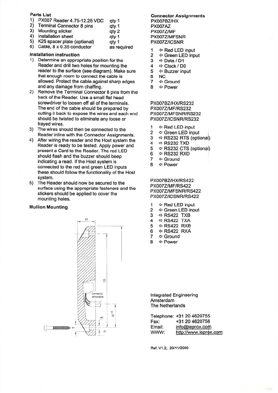 Integrated Engineering MPPROX-02 Inductive proximity card reader User Manual