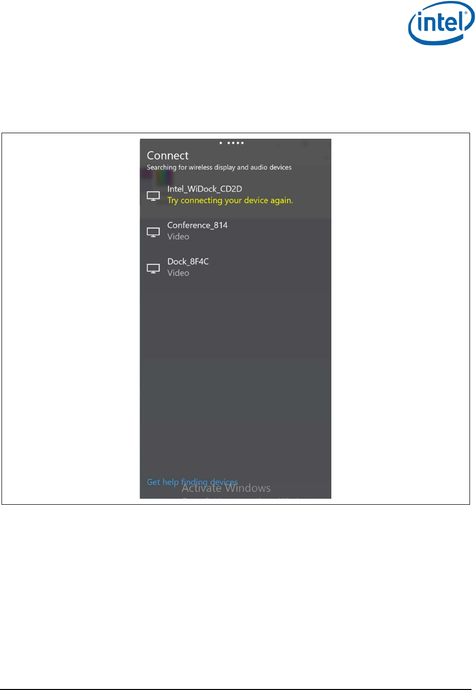 displays to be activated for the Intel® WiGig selected port. Selected displays are marked in light blue.