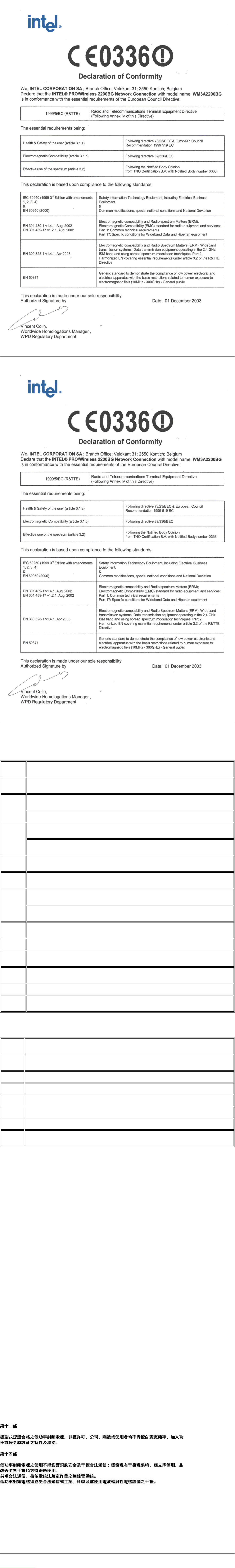 certification or approval to use the product is granted. Intel's wireless LAN's