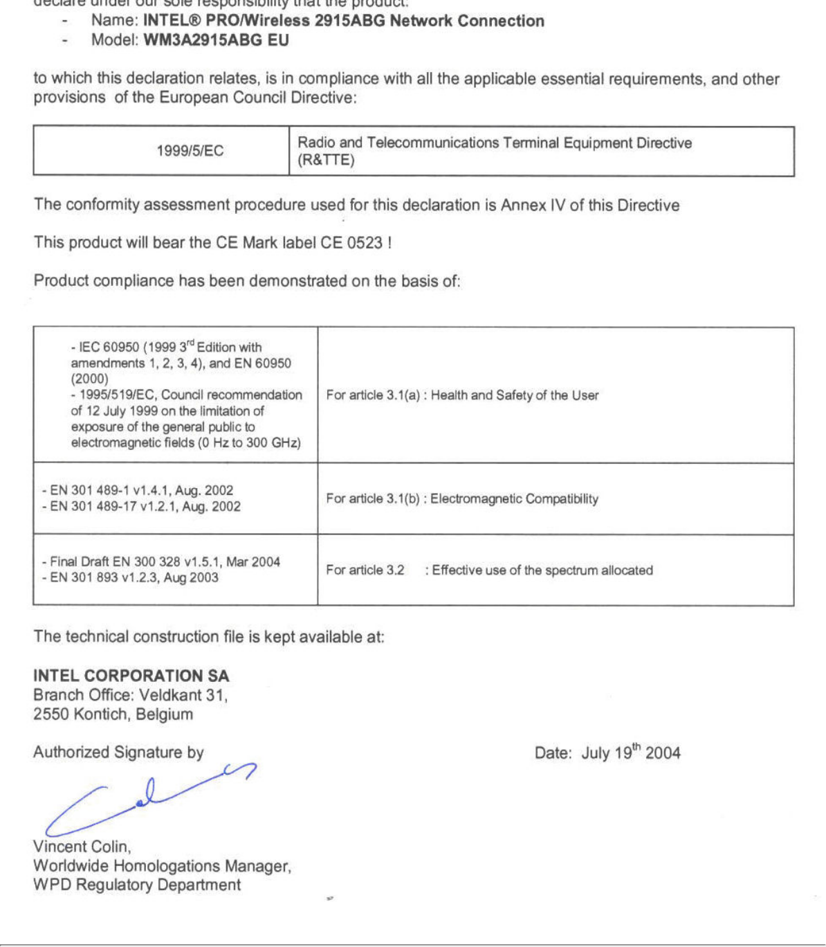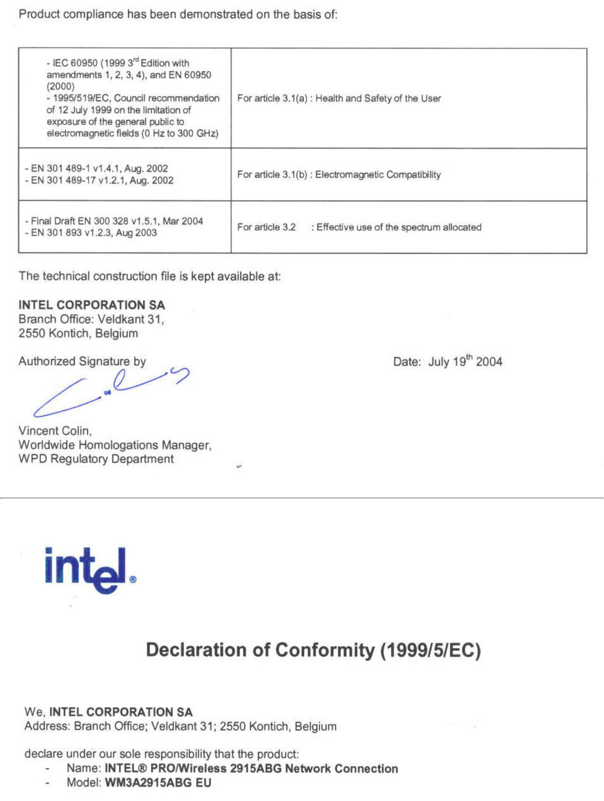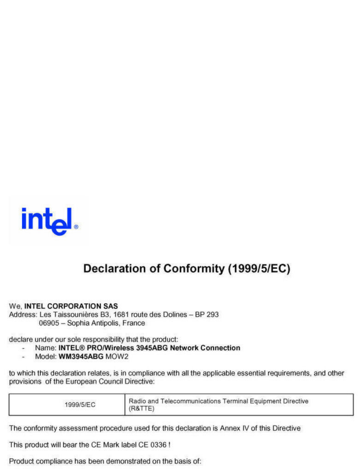 Intel Mobile Communications Intel Wi-Fi Link 5300 Series Contents