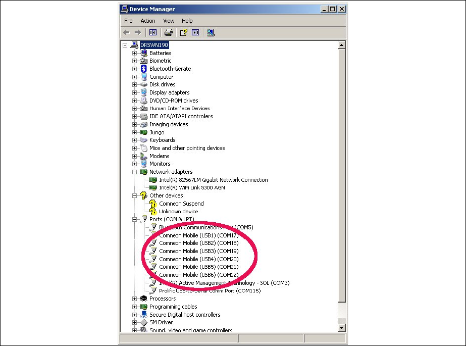 Figure 17. Comneon suspend and six COM ports are now appearing at the device