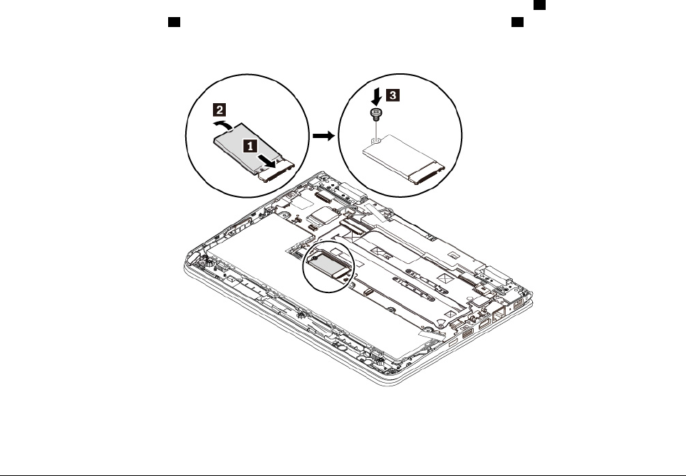 state drive downward 2. Install the screw to secure the M.2 solid-state drive 3.