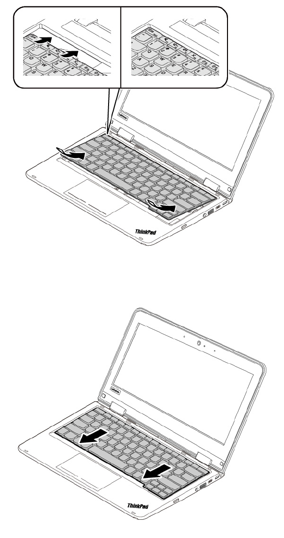 3. Slide the keyboard in the direction as shown. Ensure that the latches are secured under the keyboard