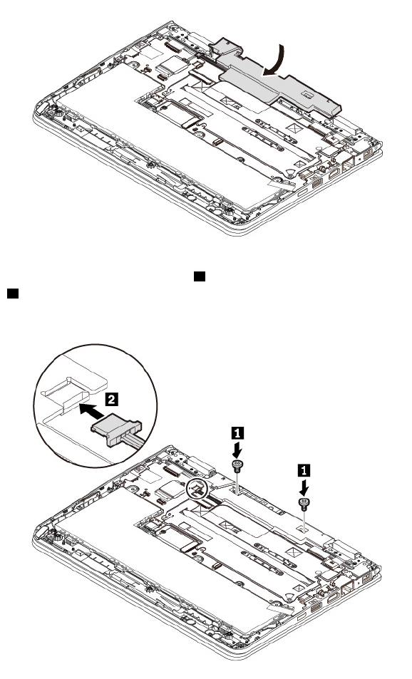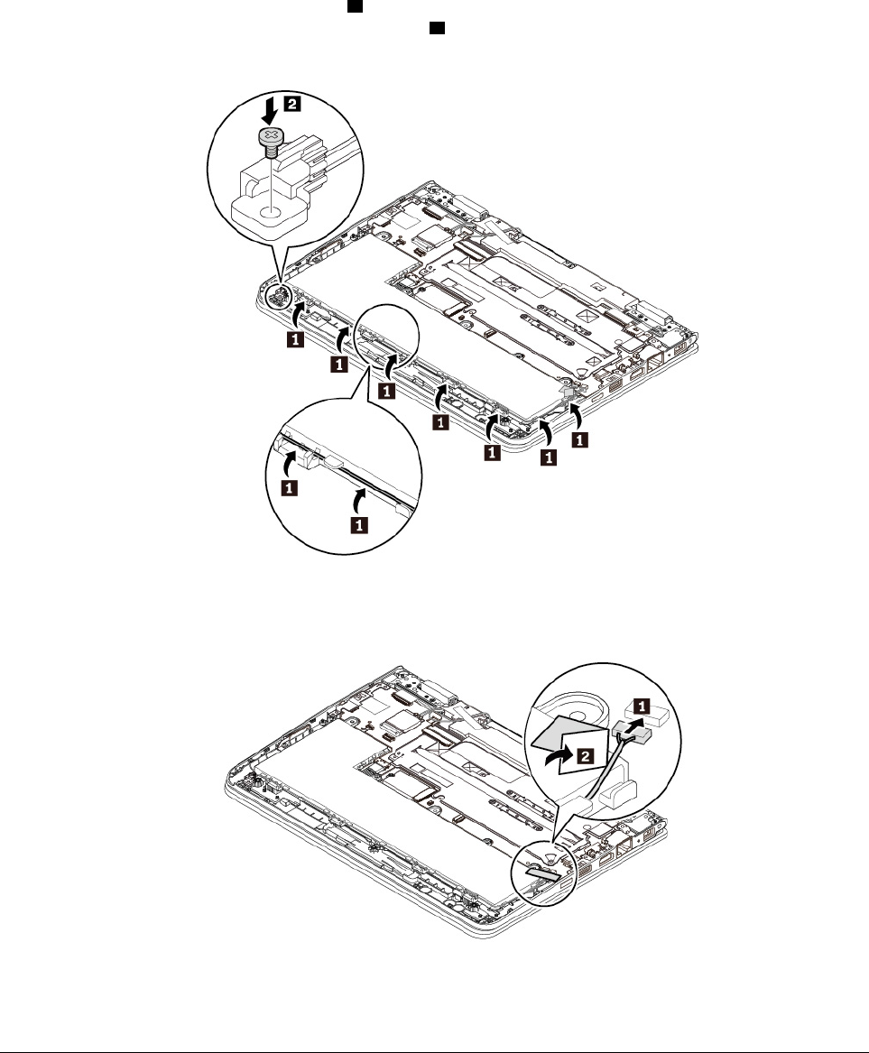 8. Install the screws to secure the speaker assembly 1. Attach the connector of the new speaker assembly