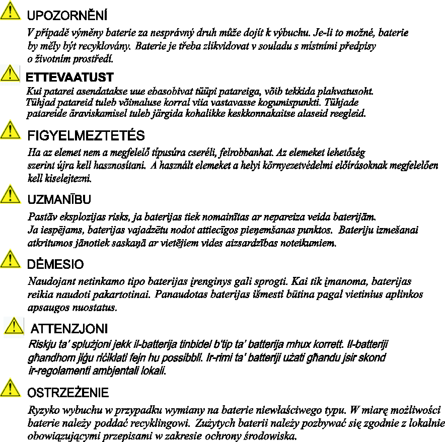 Risc de explozie, dacă bateria este înlocuită cu un tip de baterie necorespunzător.