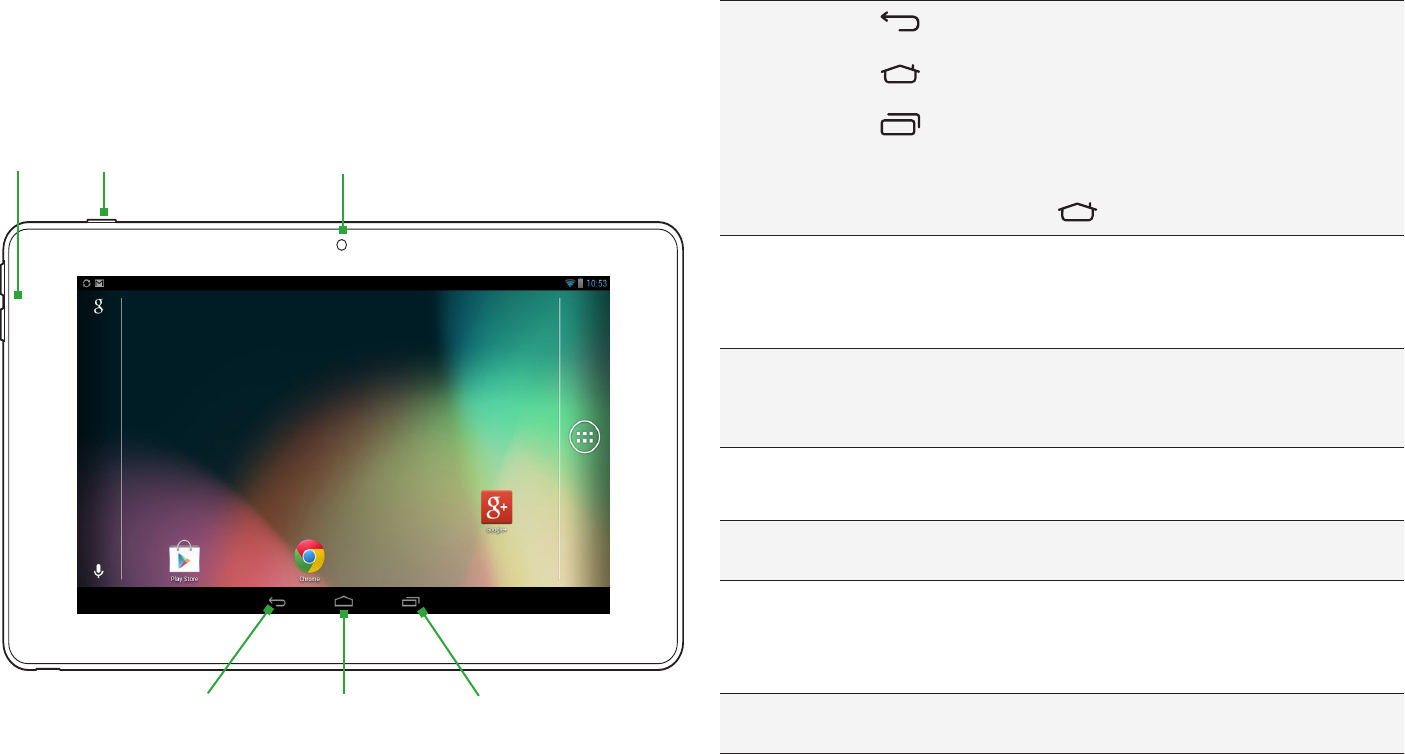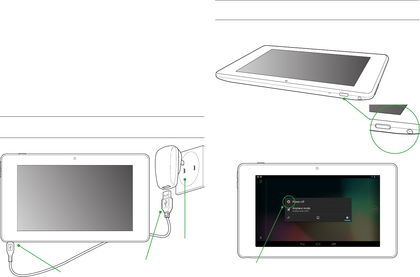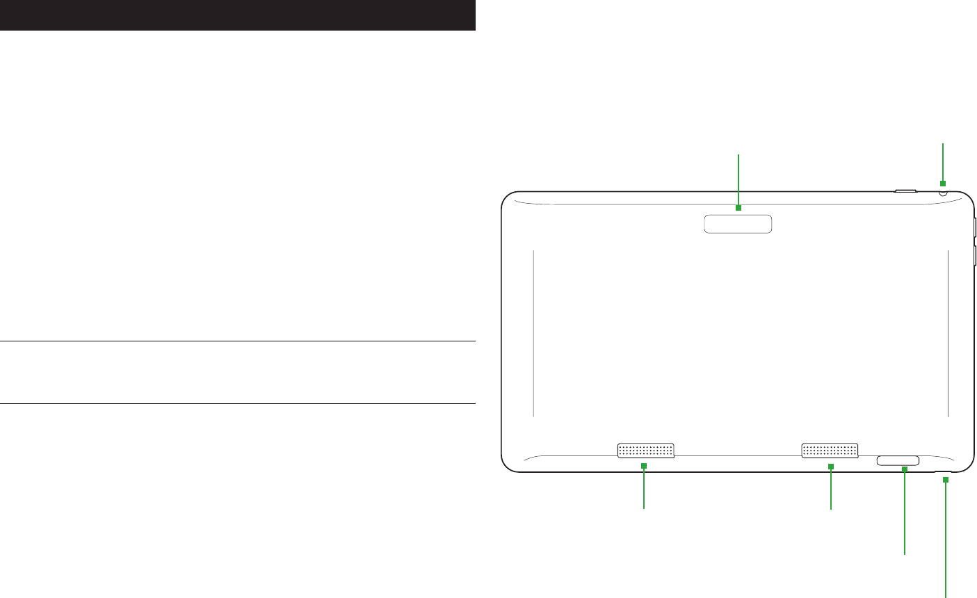 USB/Power port Connect USB cord to tablet and power adapter to charge