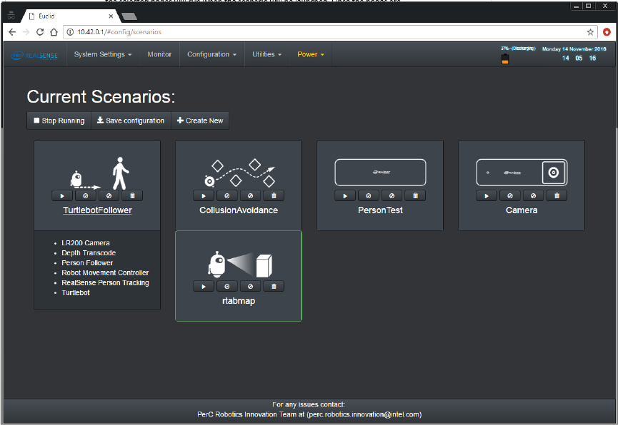 For example, a turtlebot follower scenario can be created by selecting to run the camera