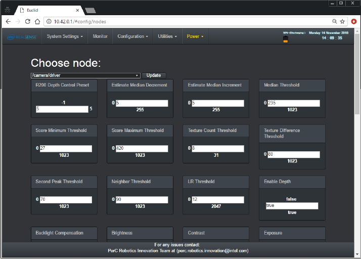 6. Navigate to the Configuration section for RealSense and Depth follower.