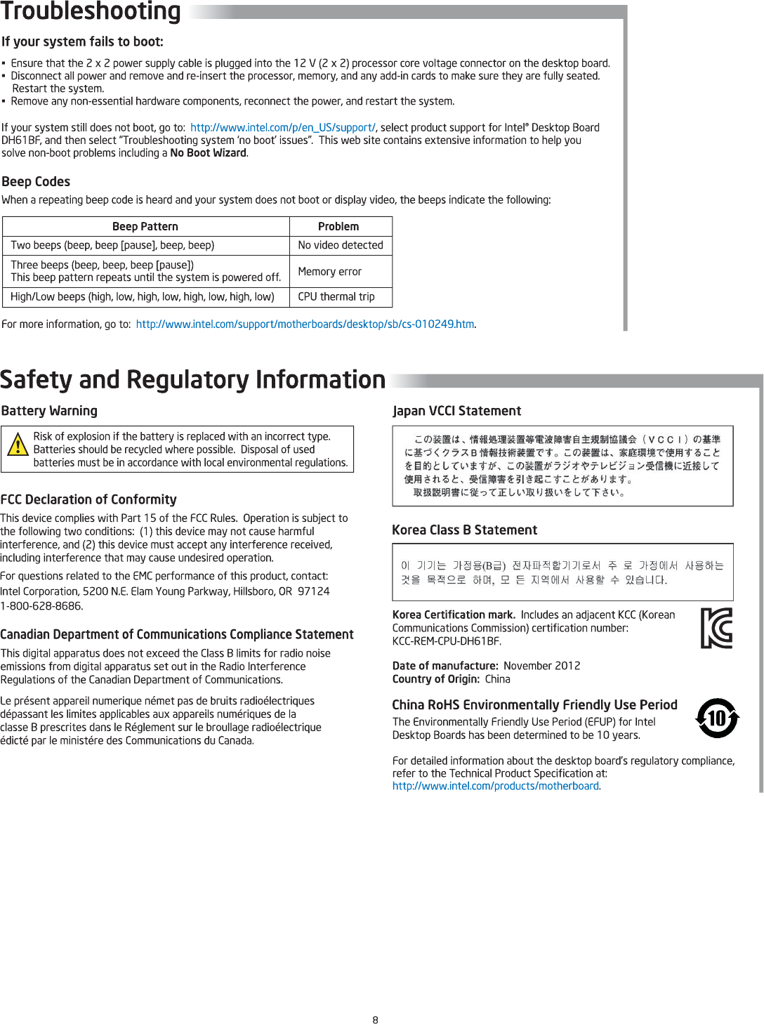 Intel Computer Hardware Dh61Bf Users Manual G83168 001