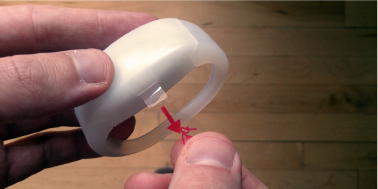 To start the wristband you pull off the transparent plastic tab as shown in the