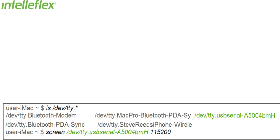 device has been identified, look for the second line in black font “screen /dev/tty.usbserial-A500….” with