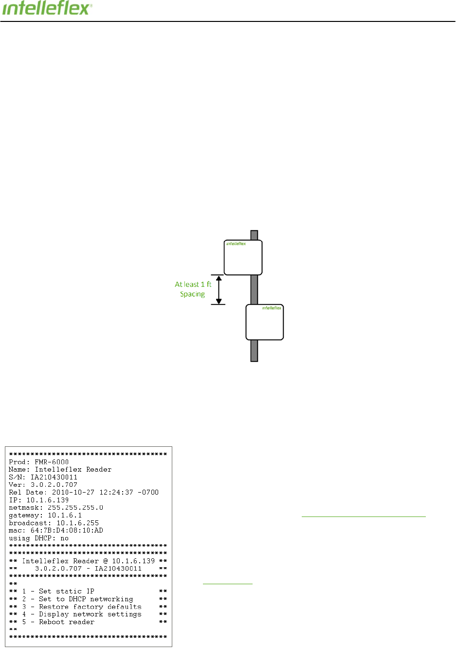 return the reader or visit Intelleflex.com for more detail.