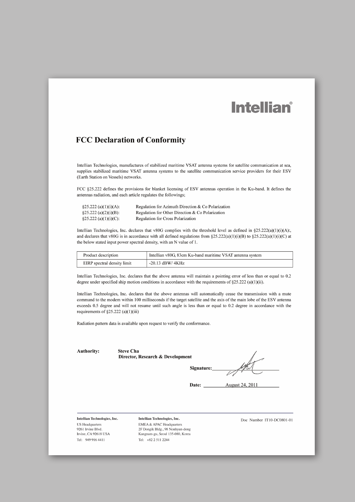 countries. The v-Series and the v80G are trademarks of Intellian Technologies,