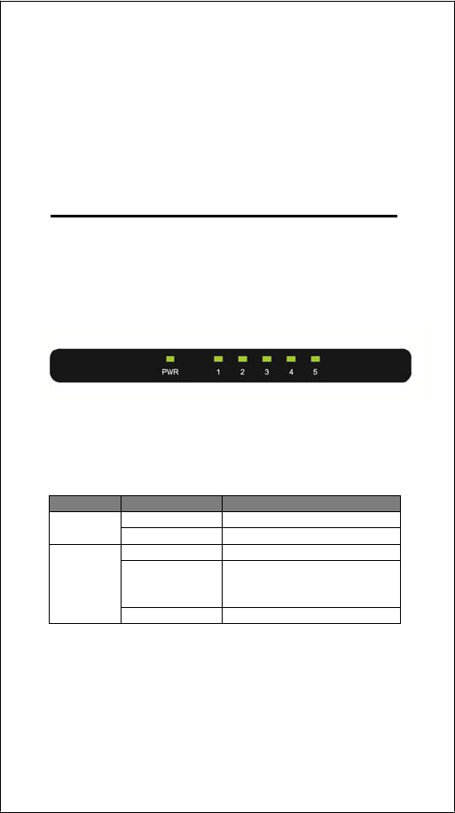 information of the ports, including power LED and Link/