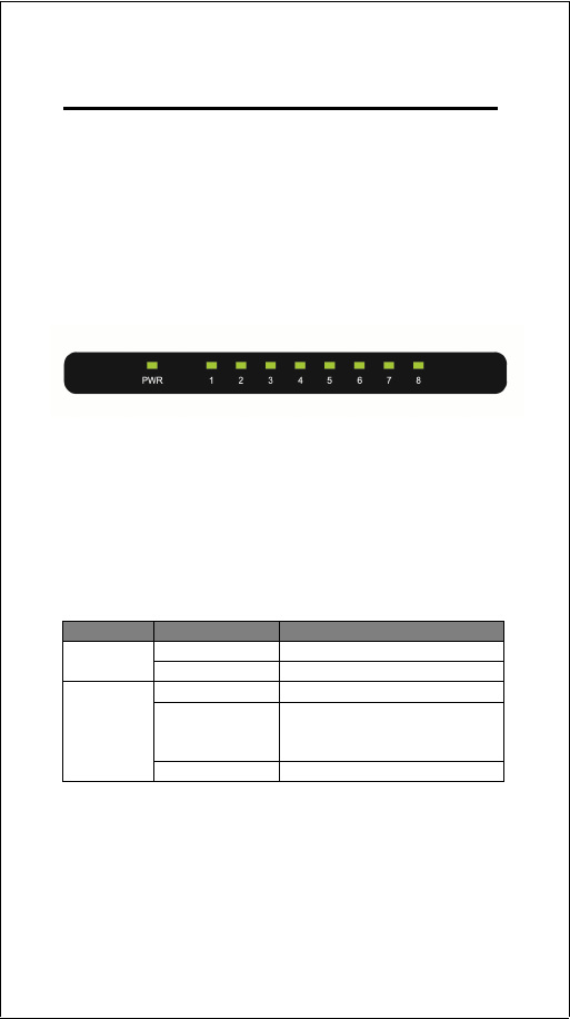 information of the ports, including power LED and Link/