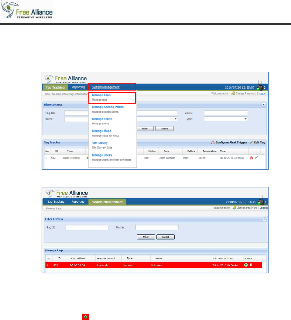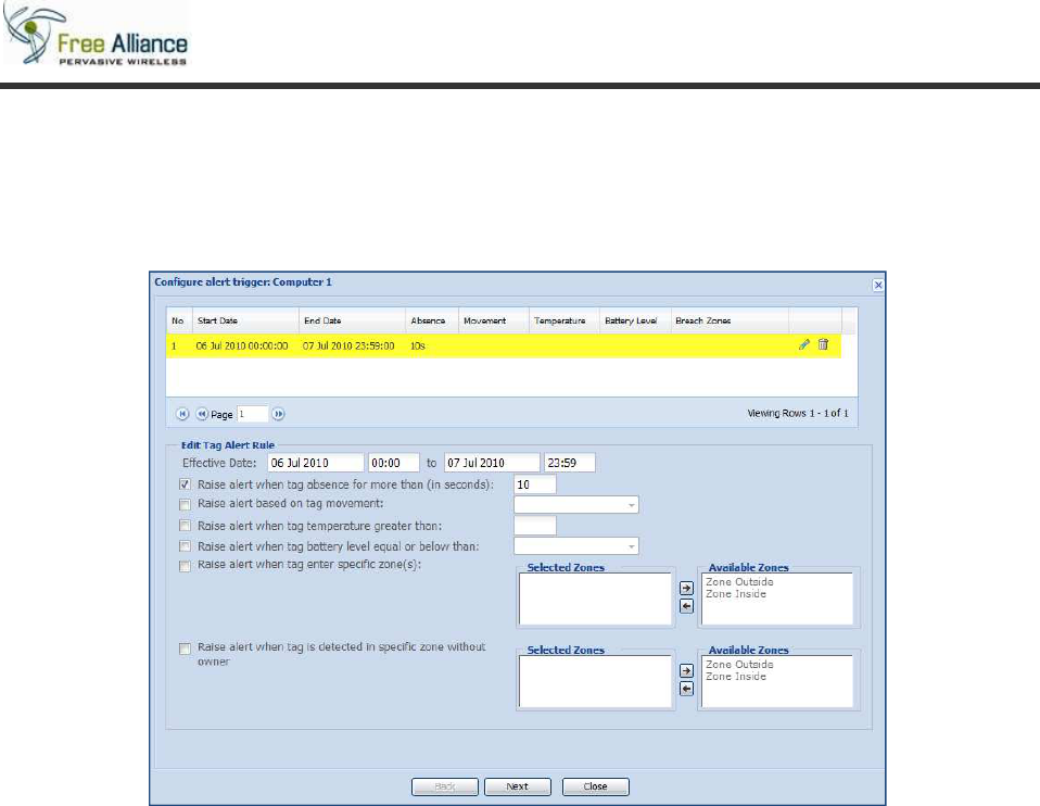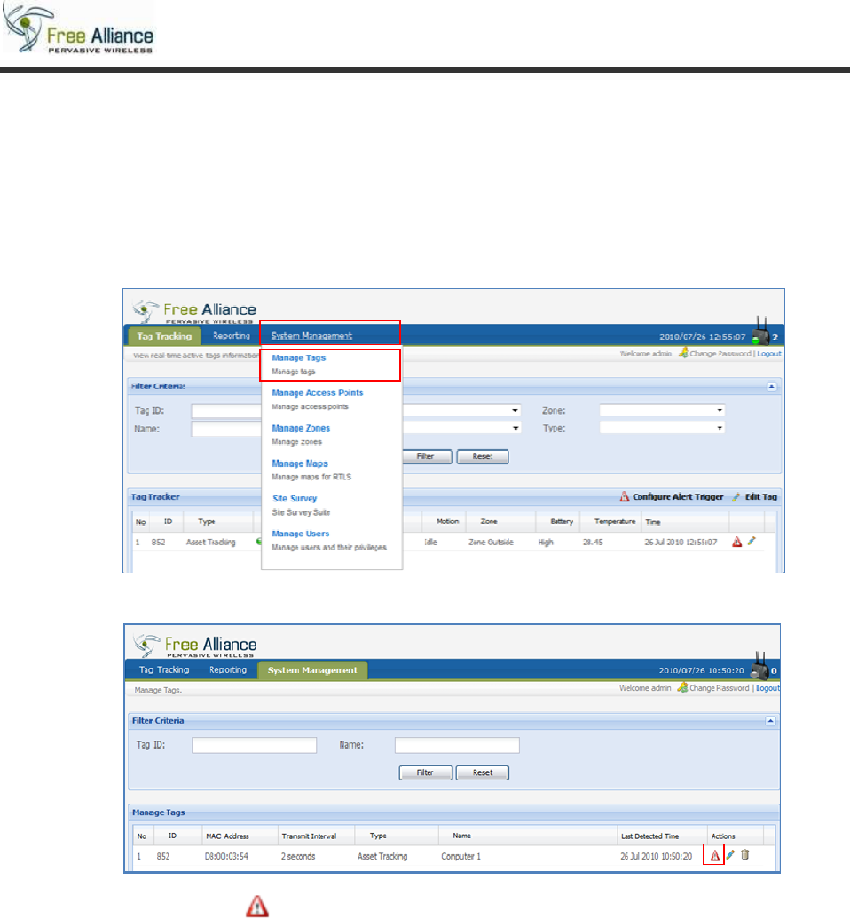 configuration of the tags. User can view the alert information raised by the Tag(s) on this