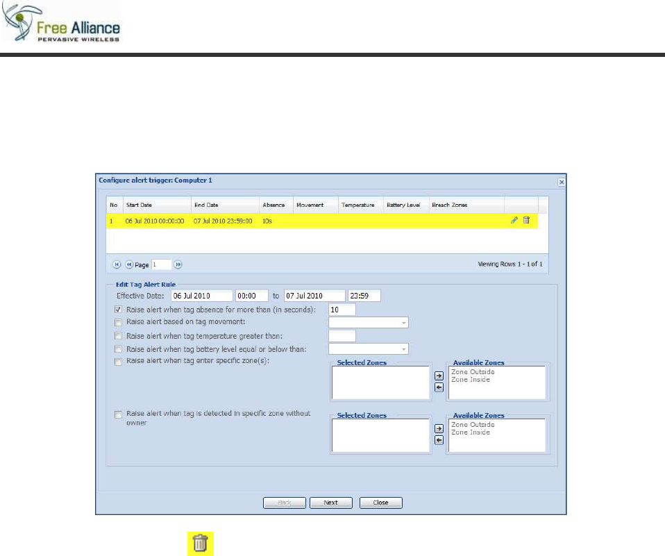 3.17.2 Click on the “ ” to remove the alert configuration of this Tag.