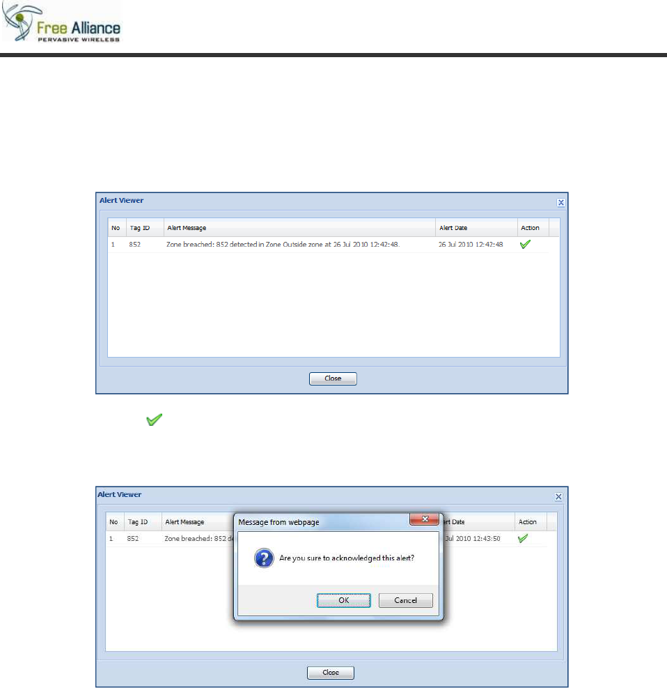 NB: If no acknowledgement is performed for this alert, the “Alert Viewer” will
