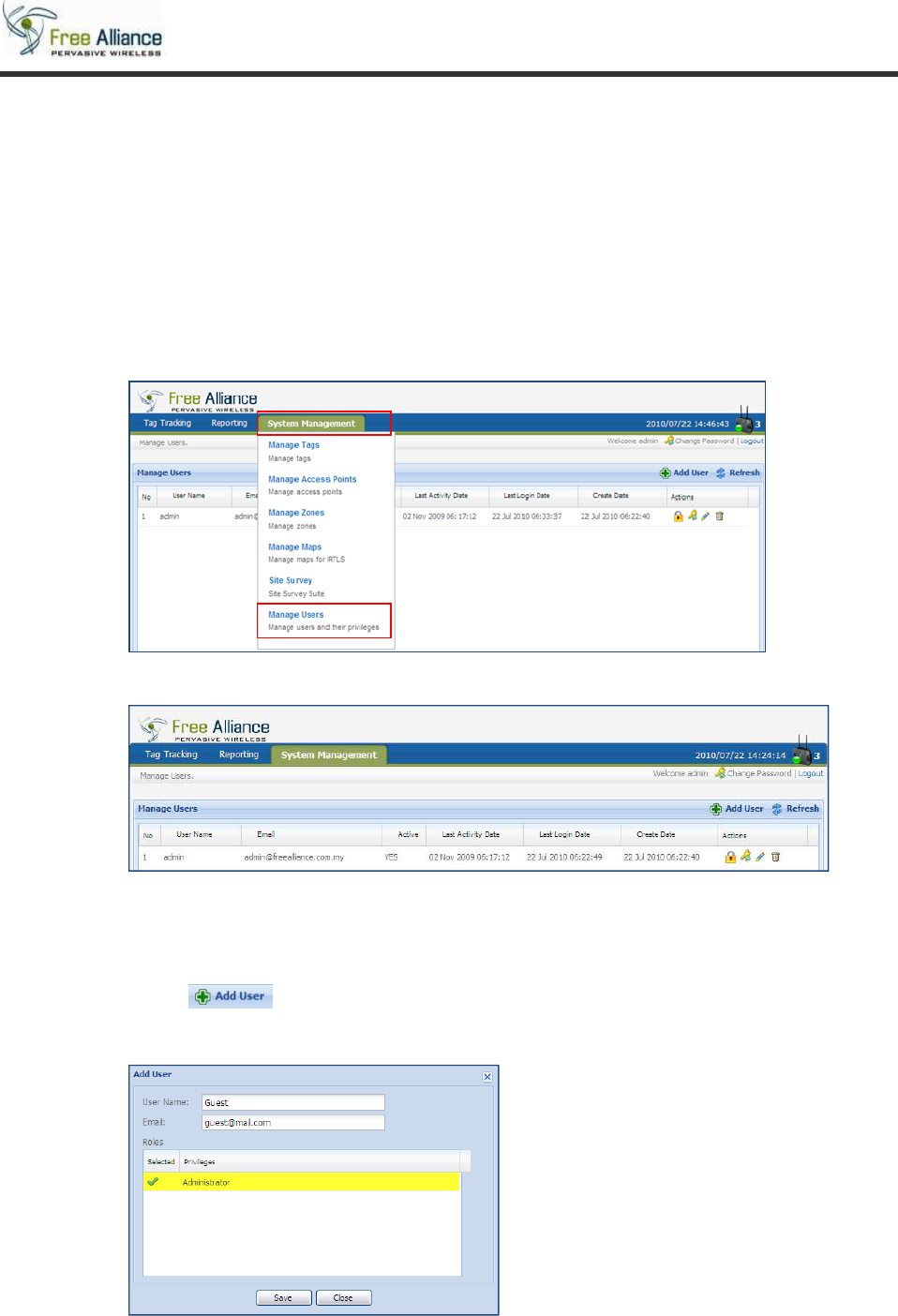 4.2.5 Click “Save” to save this user information or “Close” to cancel adding this user.