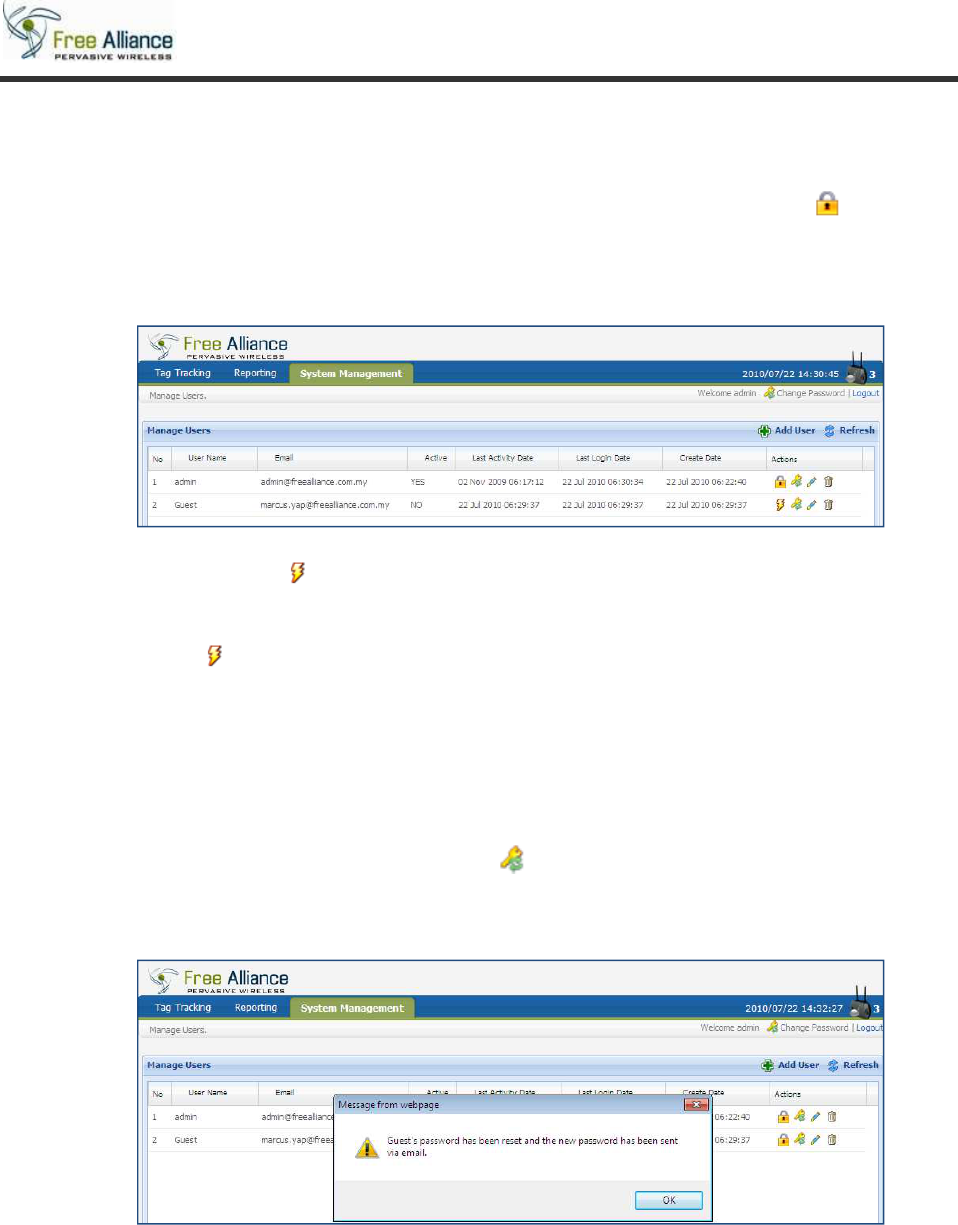 4.4.1 In the “Manage User” page, click “ ” for specific user. Click “OK” to reset the