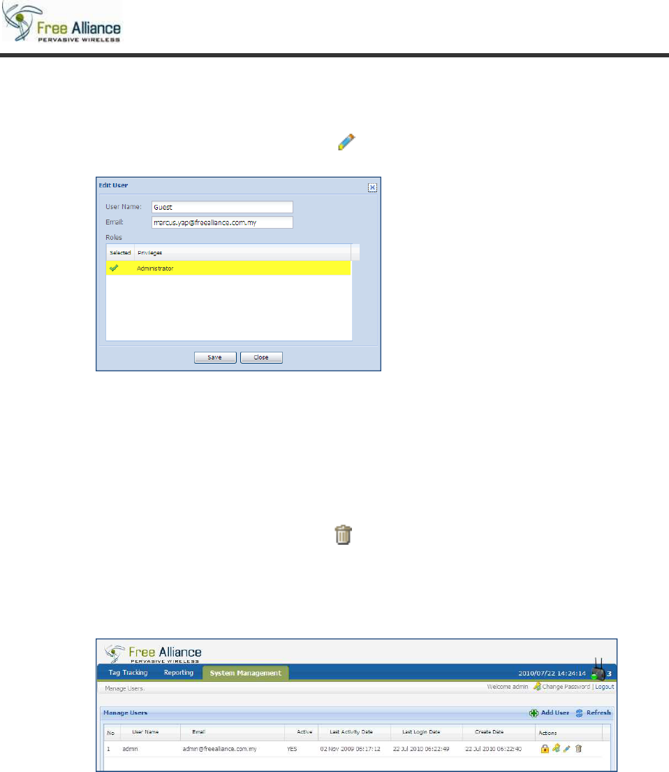 4.5.1 In the “Manage User” page, click “ ” to edit specific user. The screen will appear