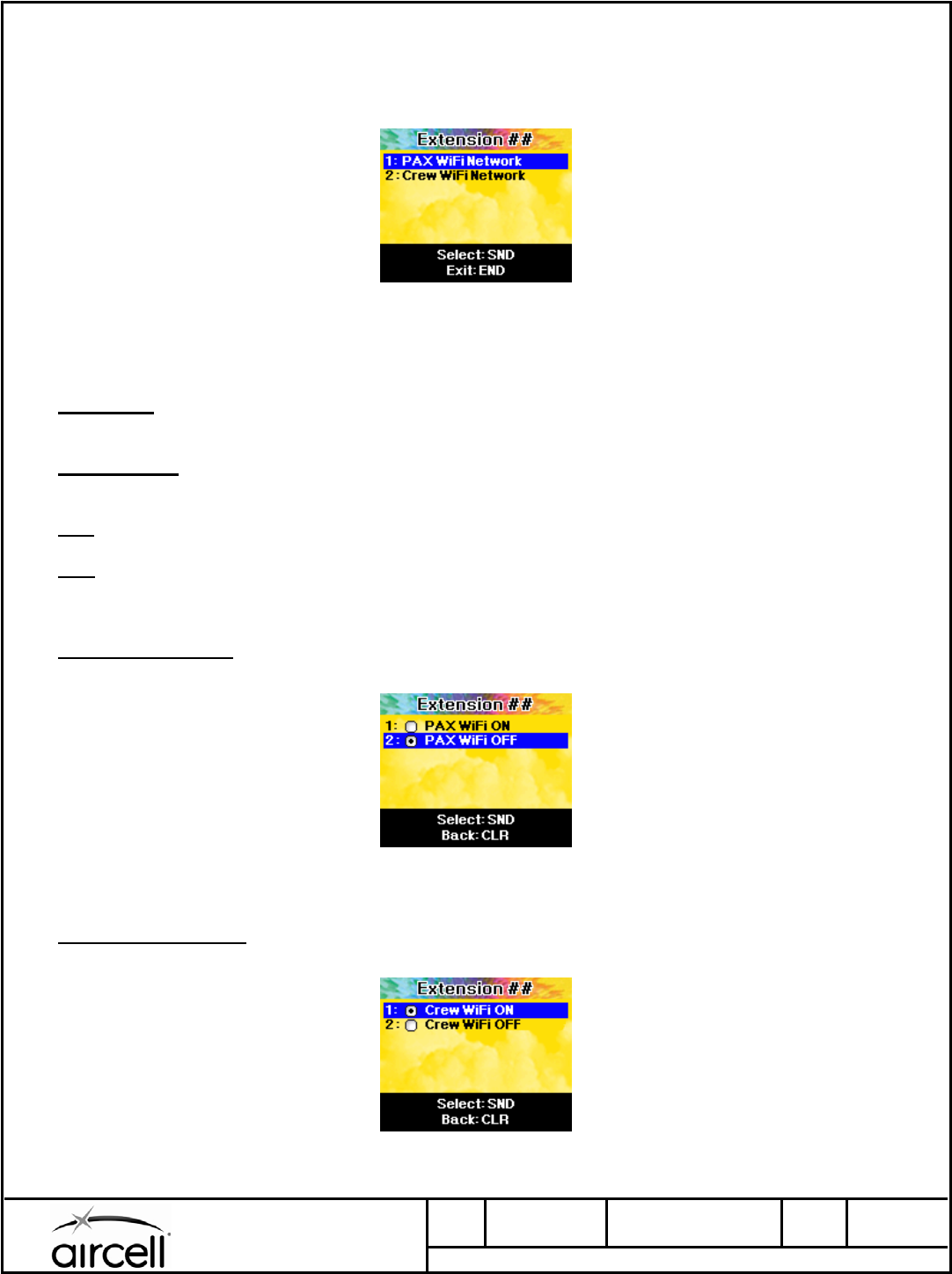 2: Crew WiFi Network - This option allows the Crew WiFi network (SSID) to be turned ON or OFF during