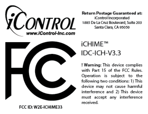 product. FCC ID: FCC ID: W2E-ICHIME33