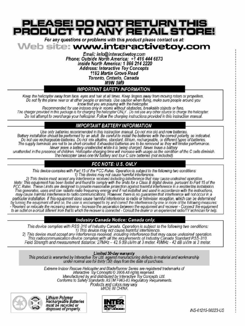 Interactive Toy Concepts 612XX49RX R/C Helicopter User Manual