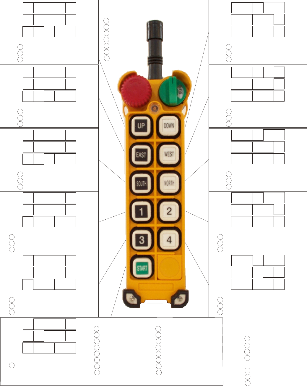 If you want to re-label any button, fill in the squares in the appropriate section. Use only the squares available.