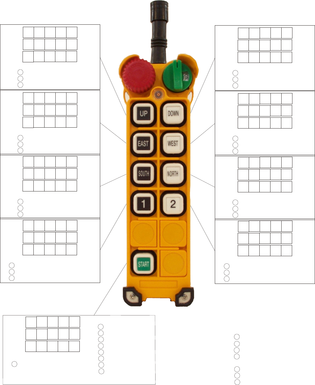Control range: 150 feet for F21-2 button models, 250 feet for F21-4 & F21-6 button models and