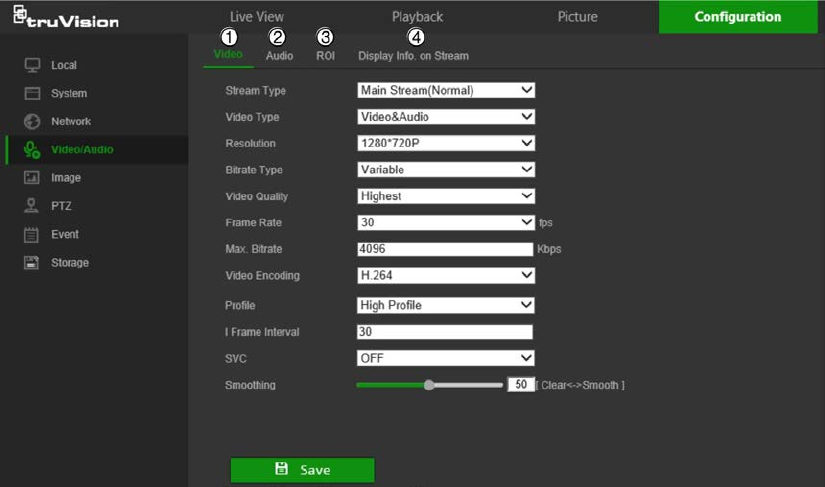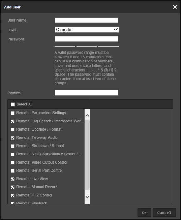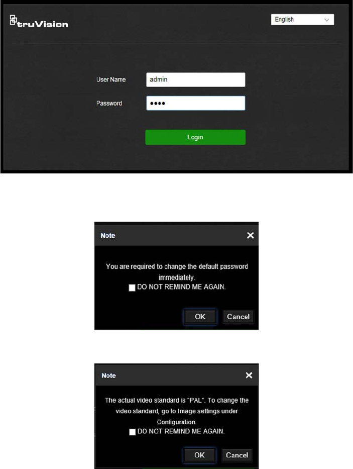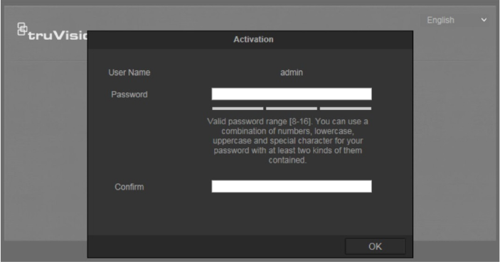 options on the camera. The user name is “admin” and the password is “1234.” For