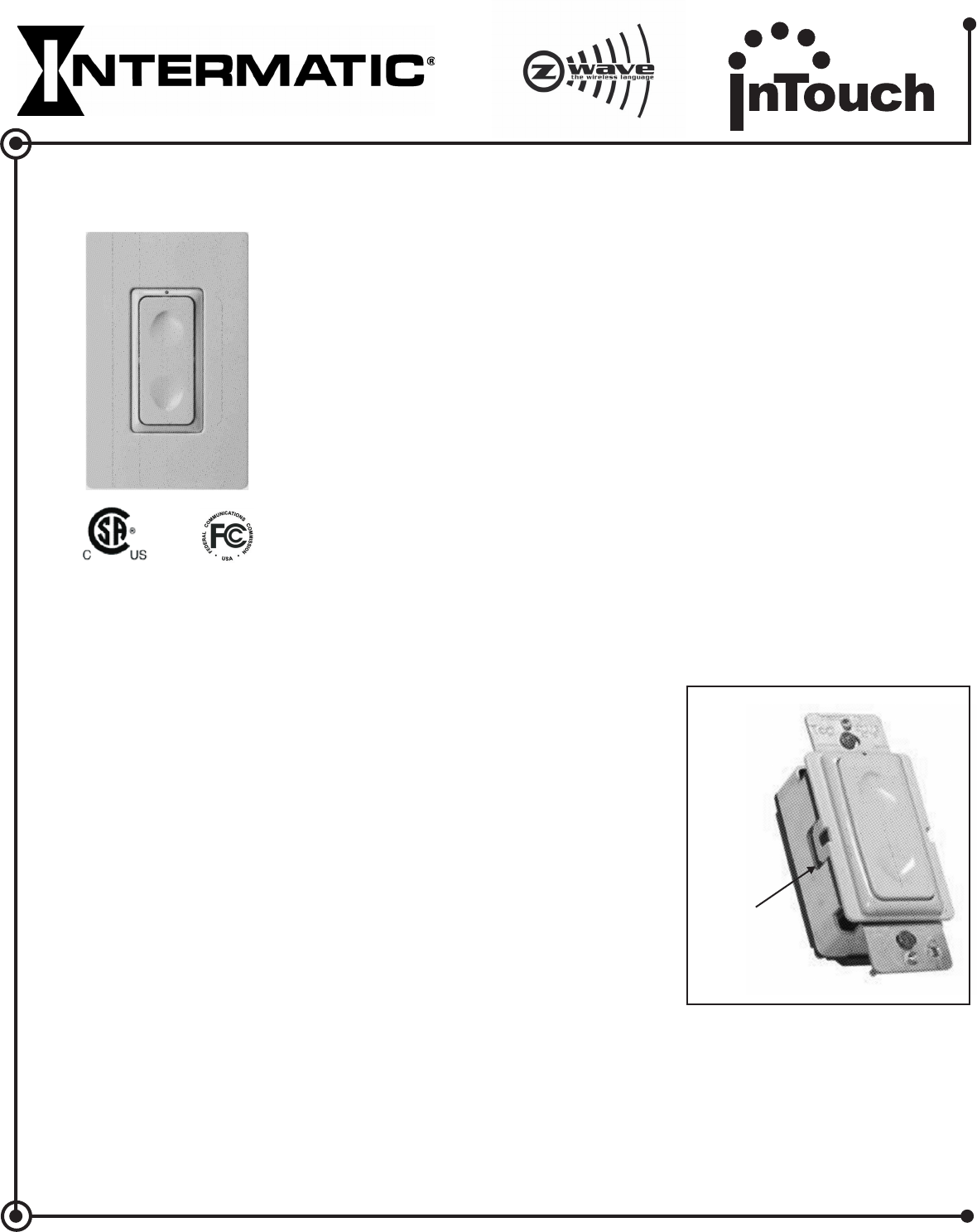 The CA5100 Accessory Wall Switch Controller is a Z-wave™ enabled device which is