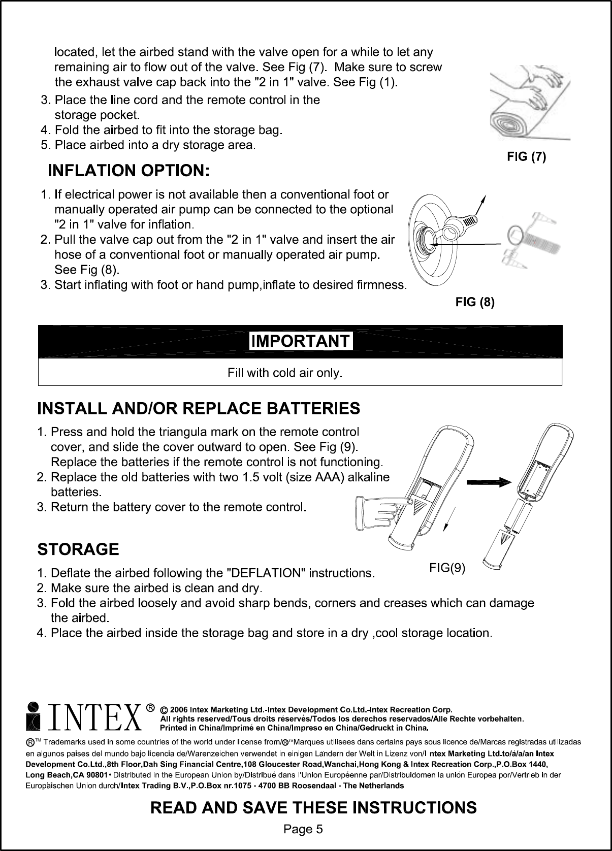 Intex Development AP619DW Remote Control for Electric Air Pump User Manual