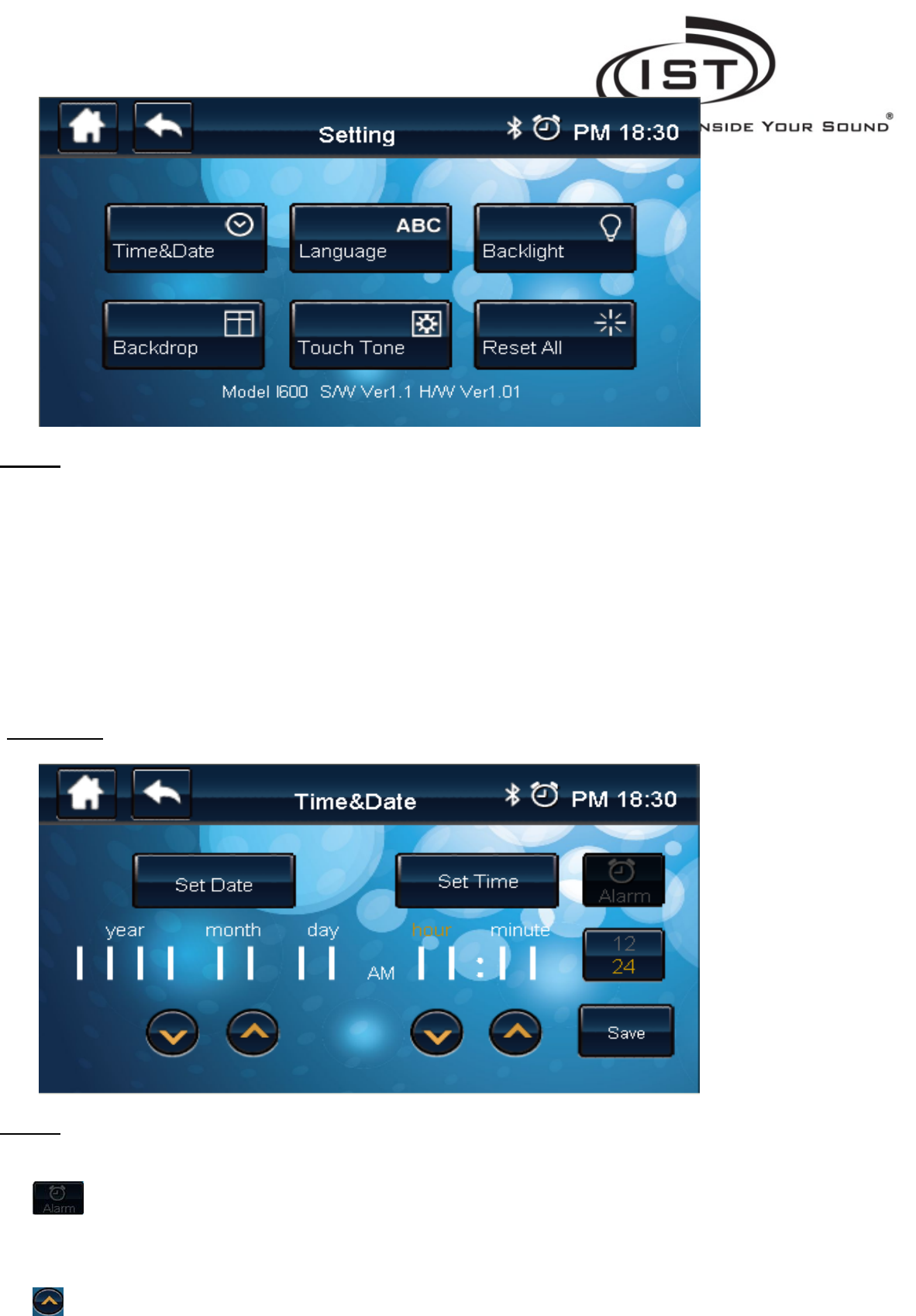 Time &Date: Enter the Time & Date Settings