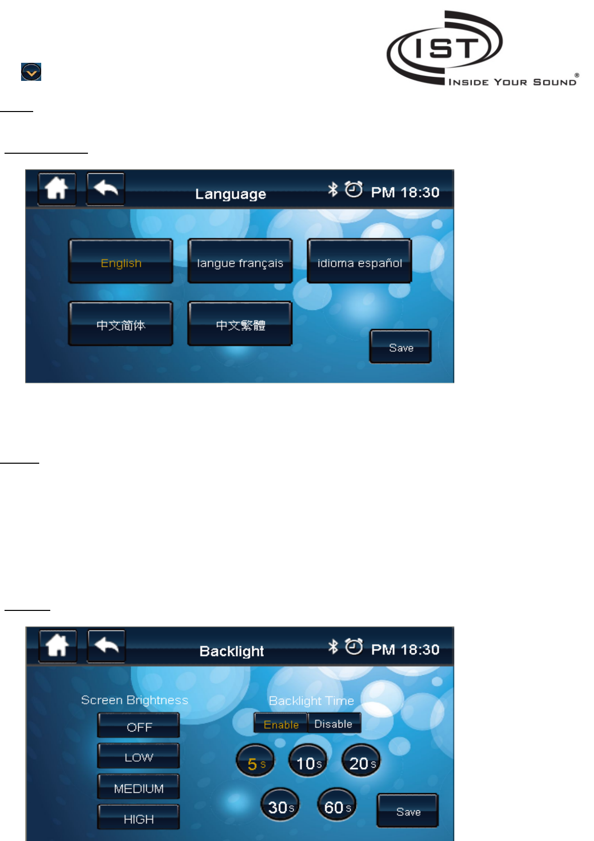 Save: Save the Backlight Setting.