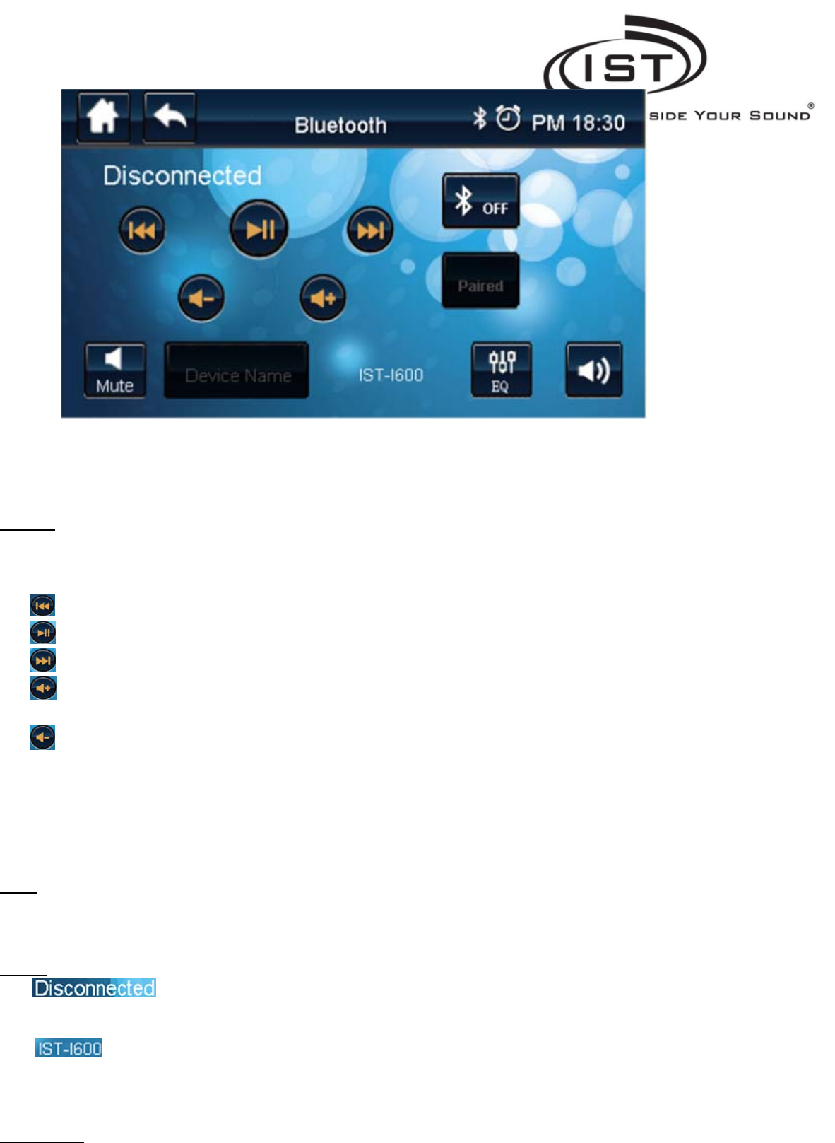 Bluetooth Status Display. (Power on, power off, connected, disconnected)