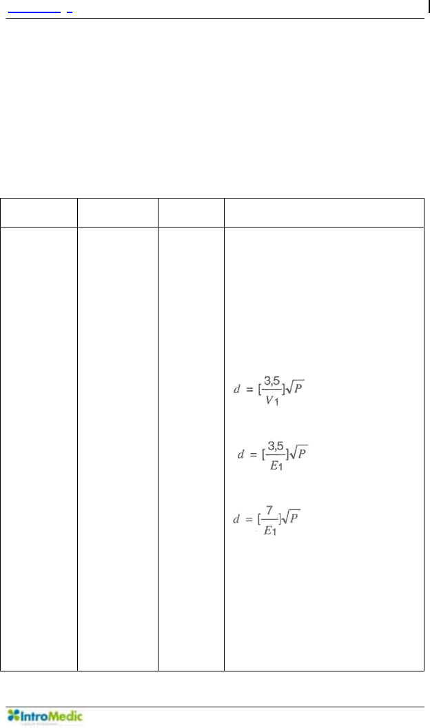 in metres (m)can be estimated using the equation applicable to the frequency of the transmitter, where p is