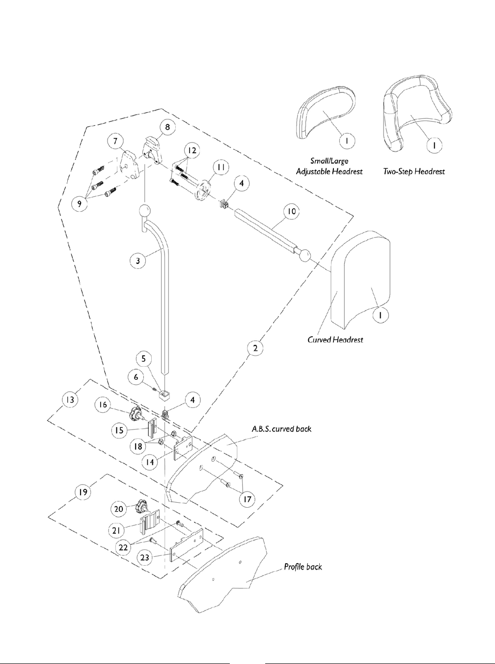 Accessories, Headrest Support Assembly - A.B.S. Curved and Profile Back .......................... 147