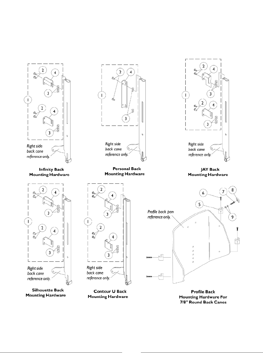 Back Assembly Mounting Hardware - A.B.S. Curved Back For (7/8" Round) Back Canes ..... 58