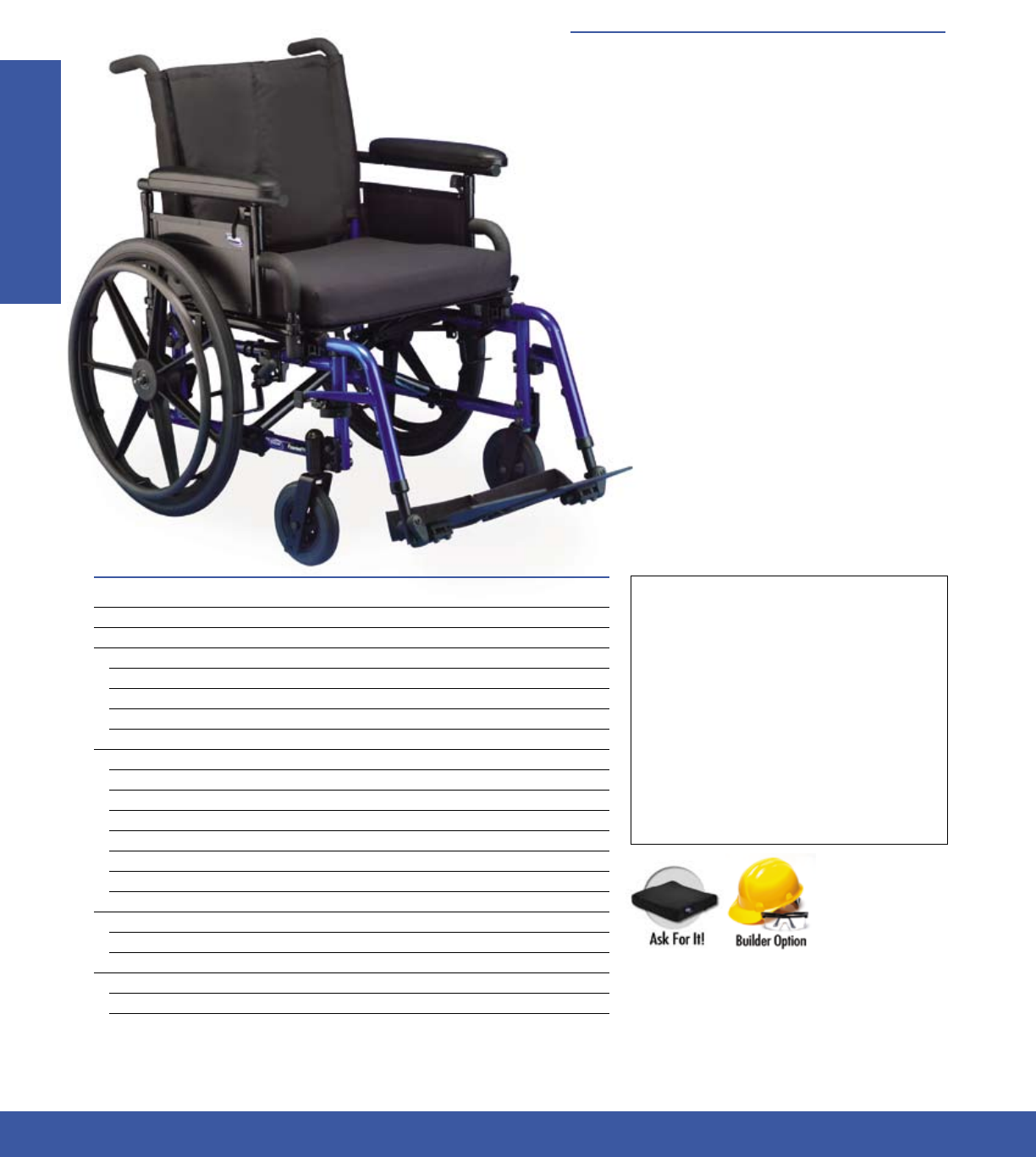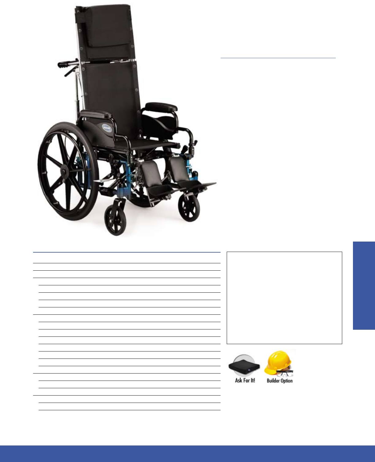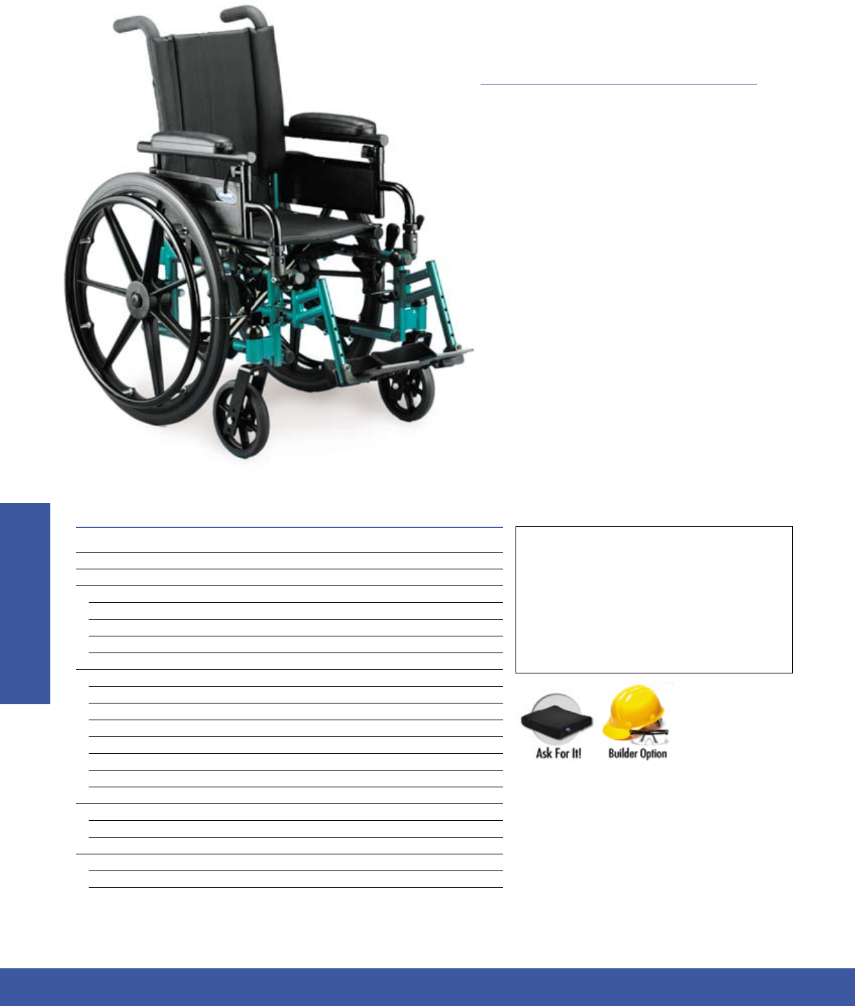 • Low-maintenance designs that meet RESNA standards for manual wheelchair performance.