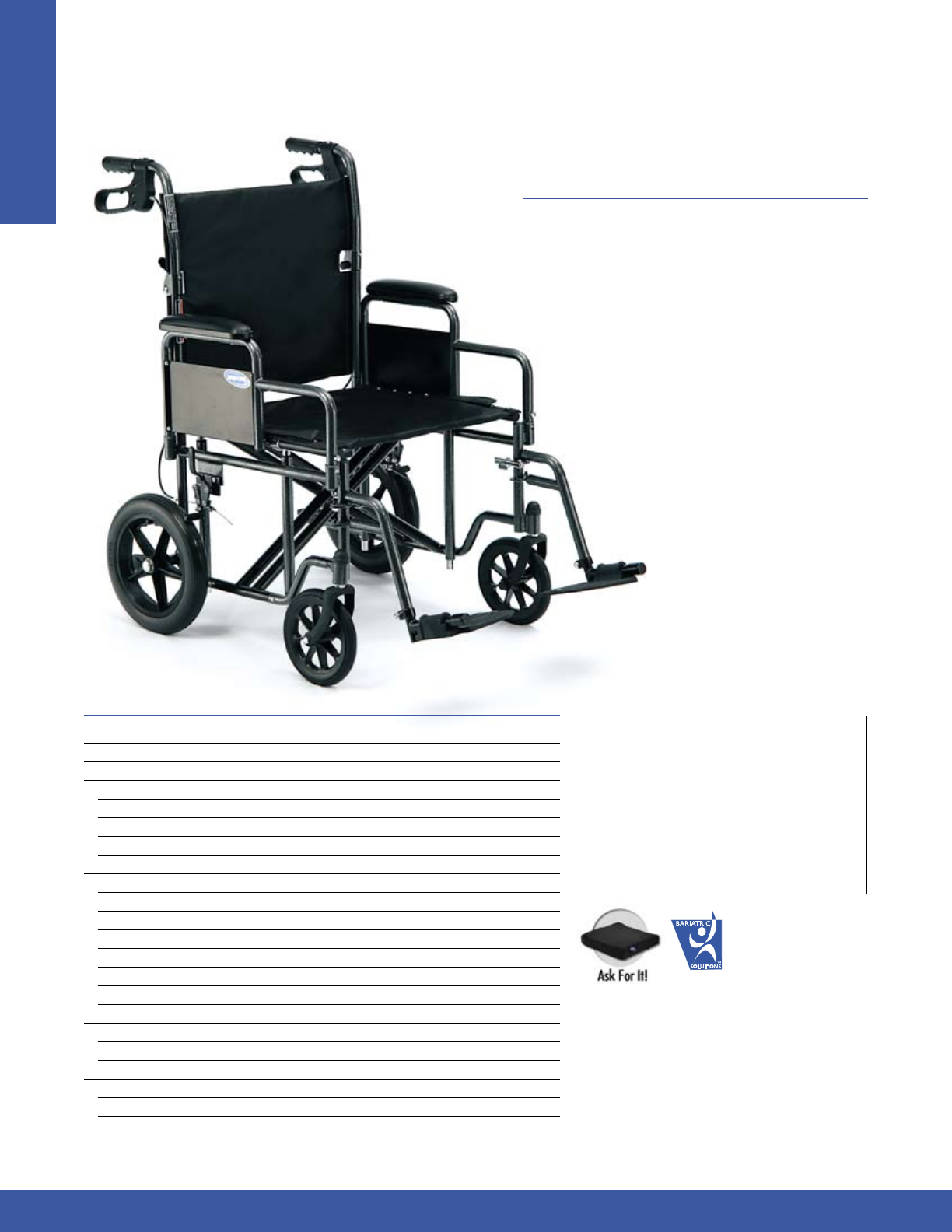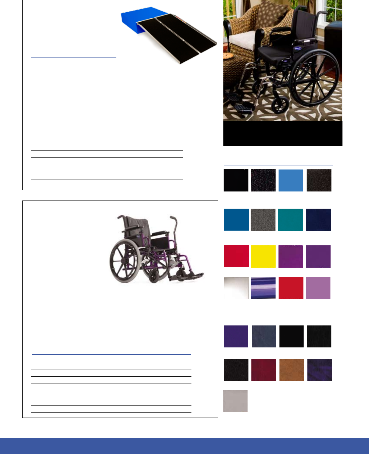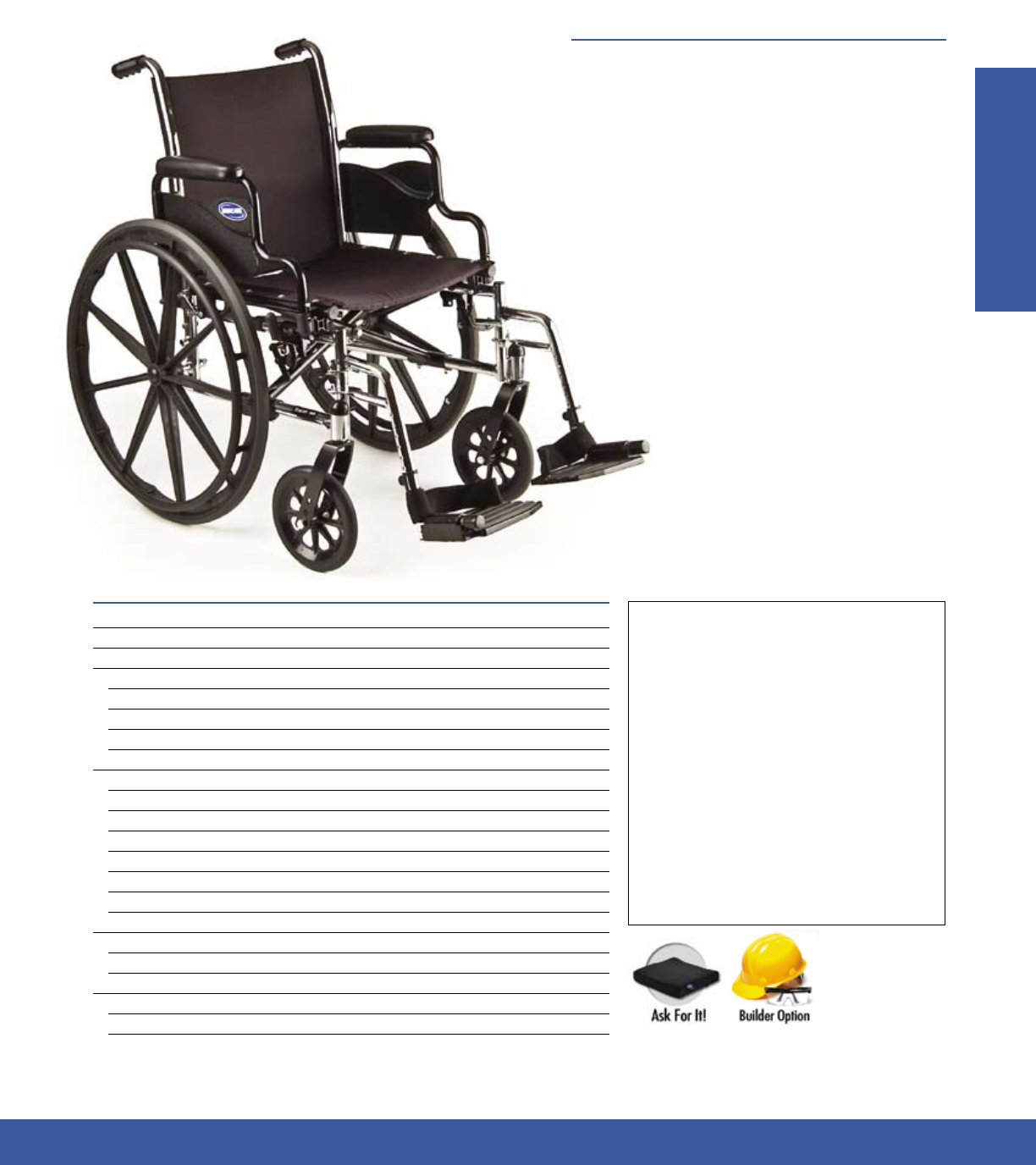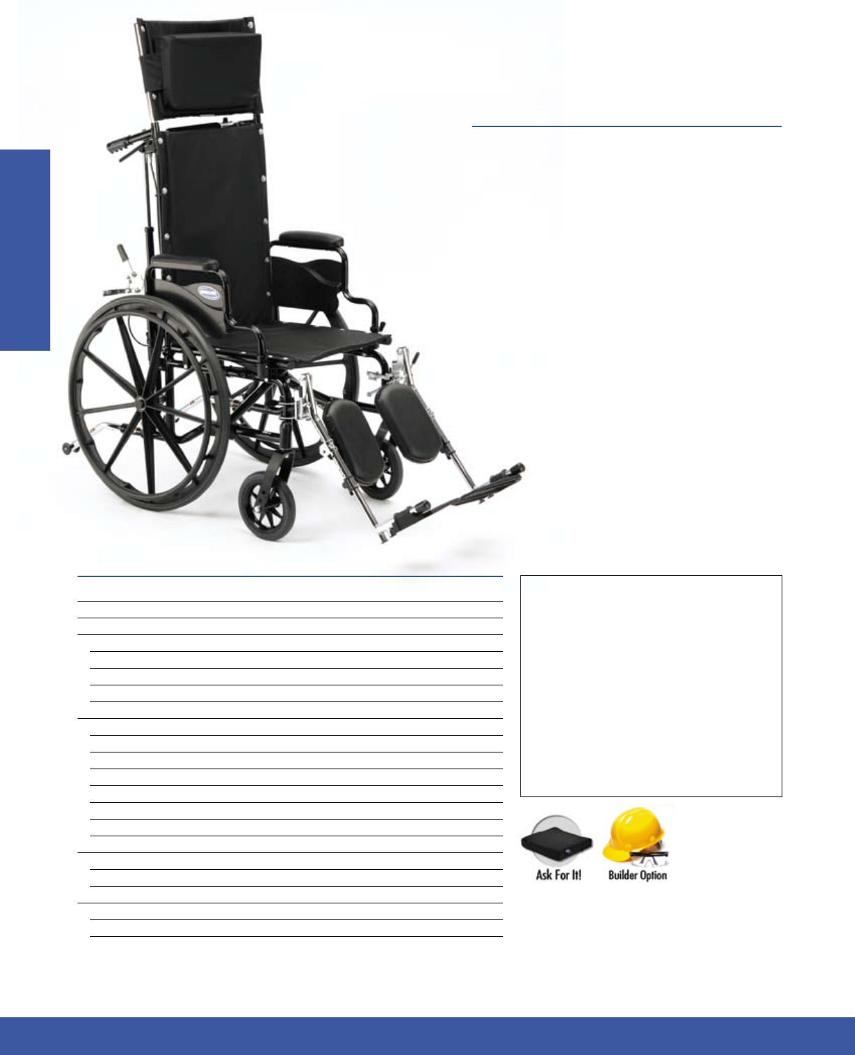 • Low-maintenance designs that meet RESNA standards for manual wheelchair performance.