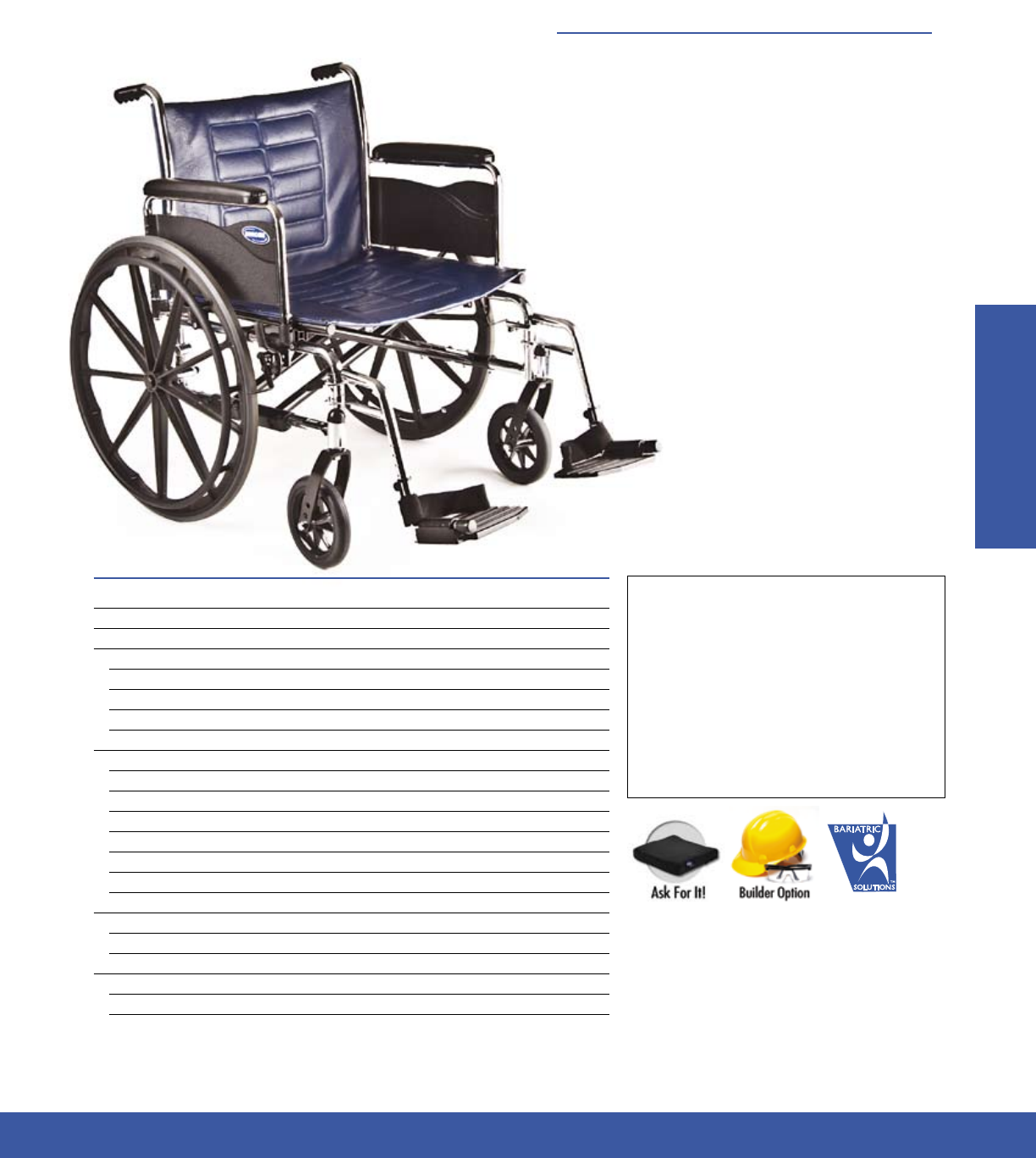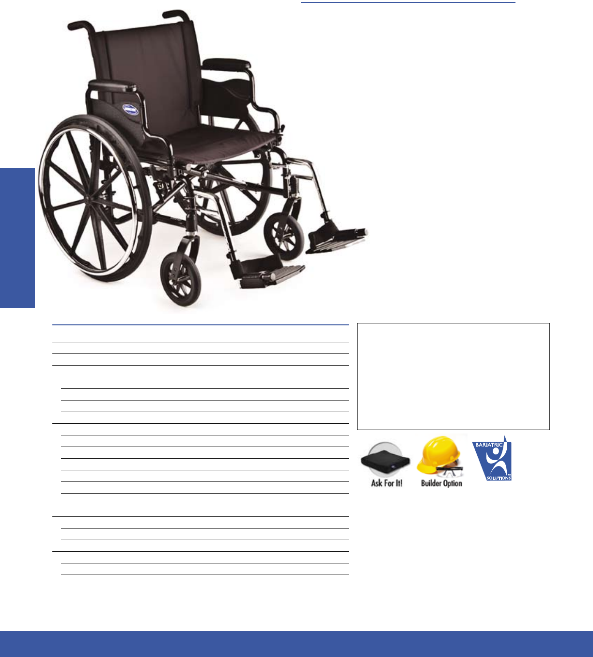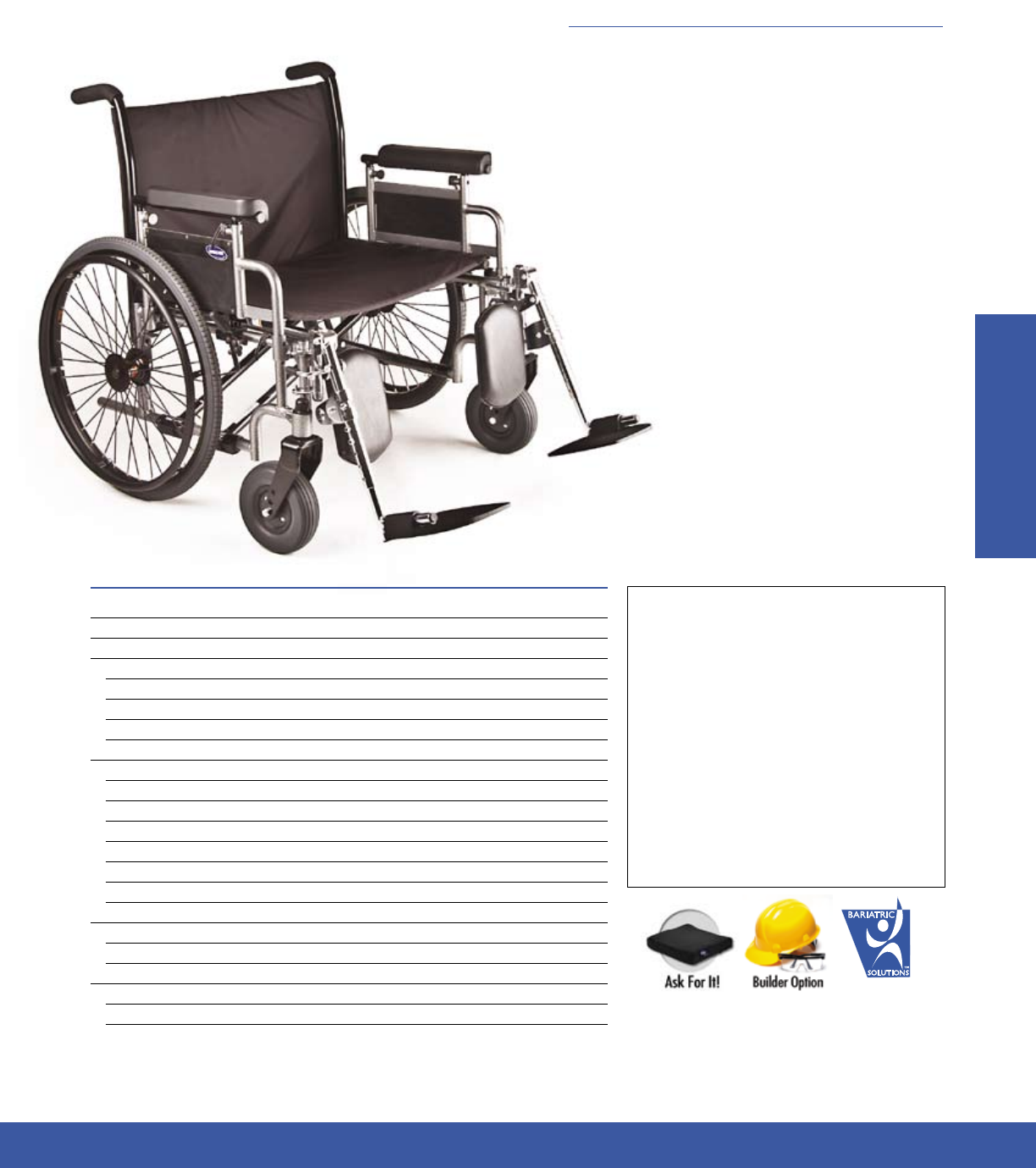Invacare products with the Bariatric/Heavy-Duty icon are designed for your bariatric patients whose height and weight