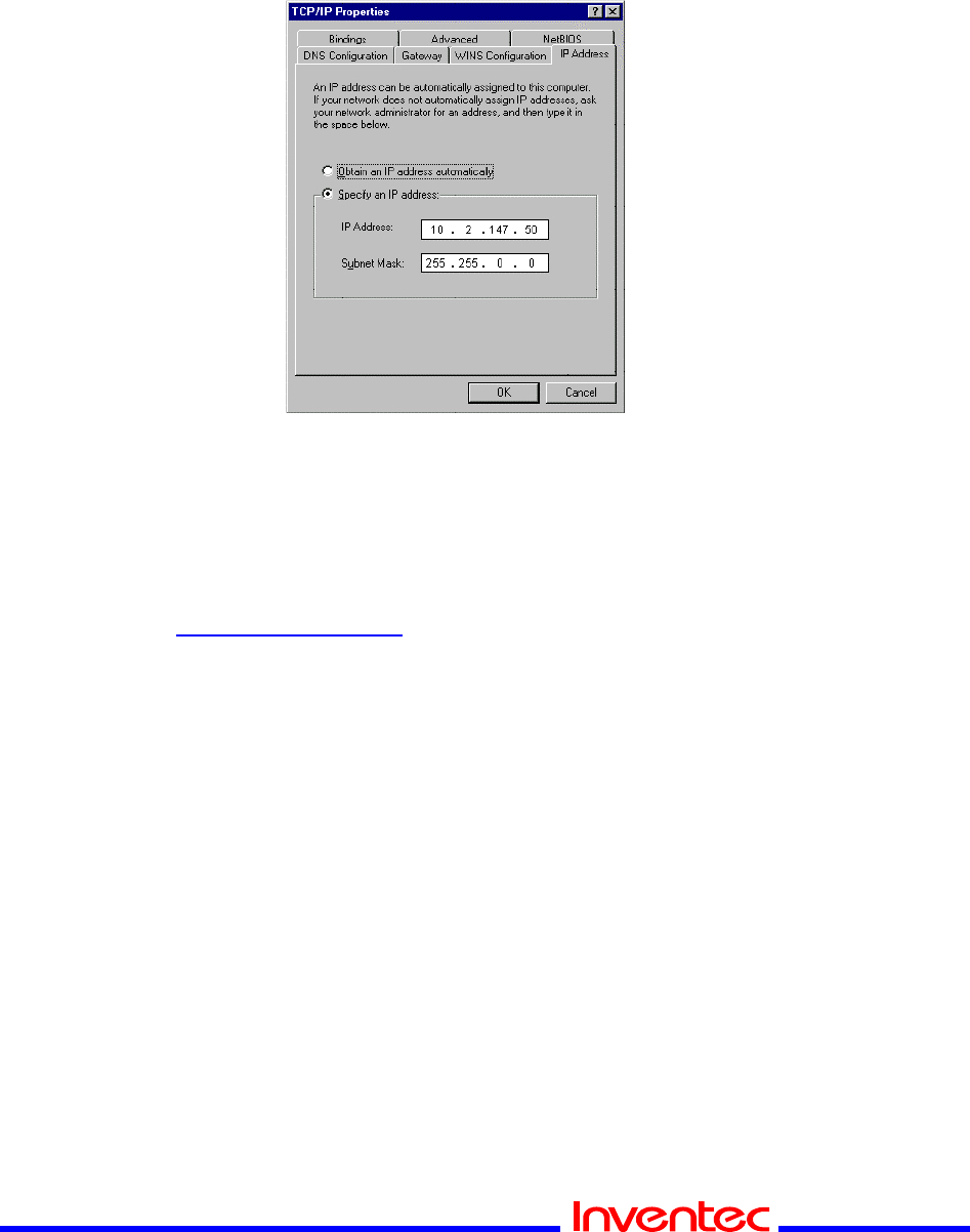 4. Select the “IP Address” tab. Verify that your IP Address is 10.2.147.50, your