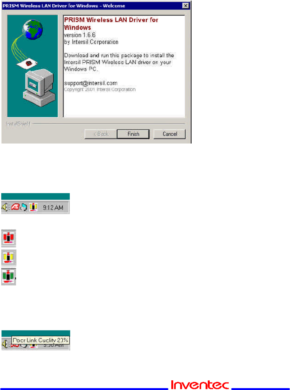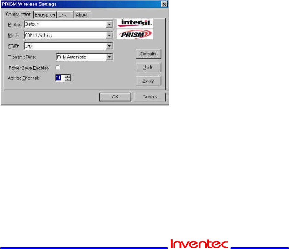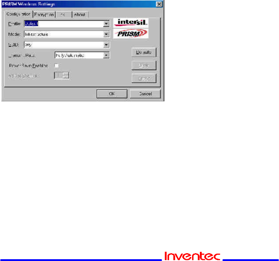 The PRISM WLAN Configuration Utility is installed simultaneously with the driver