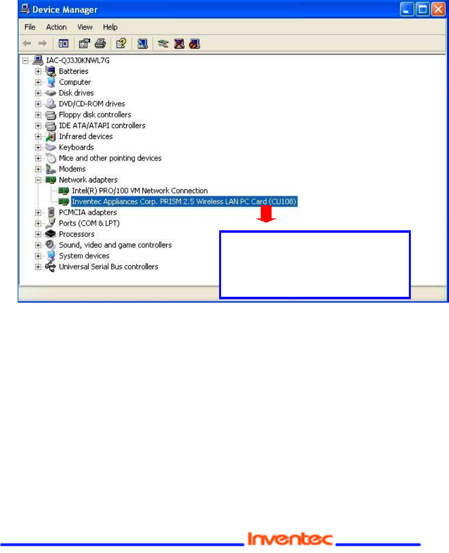 Wireless LAN USB adapter in one of the USB port. If you see a yellow question mark,