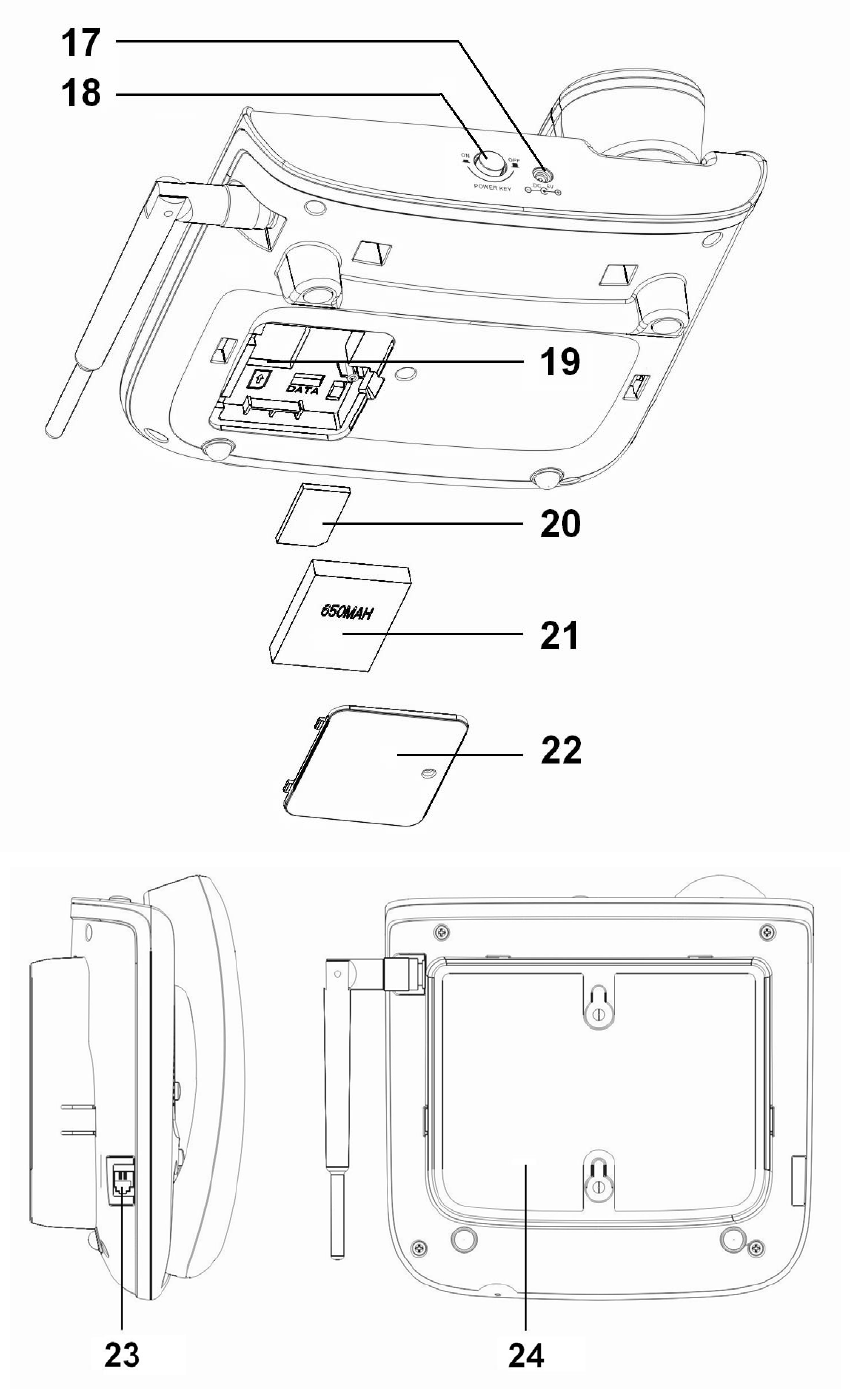 • / / : Voice message waiting in L1; L2; both L1 and L2. Only one of those icons shall