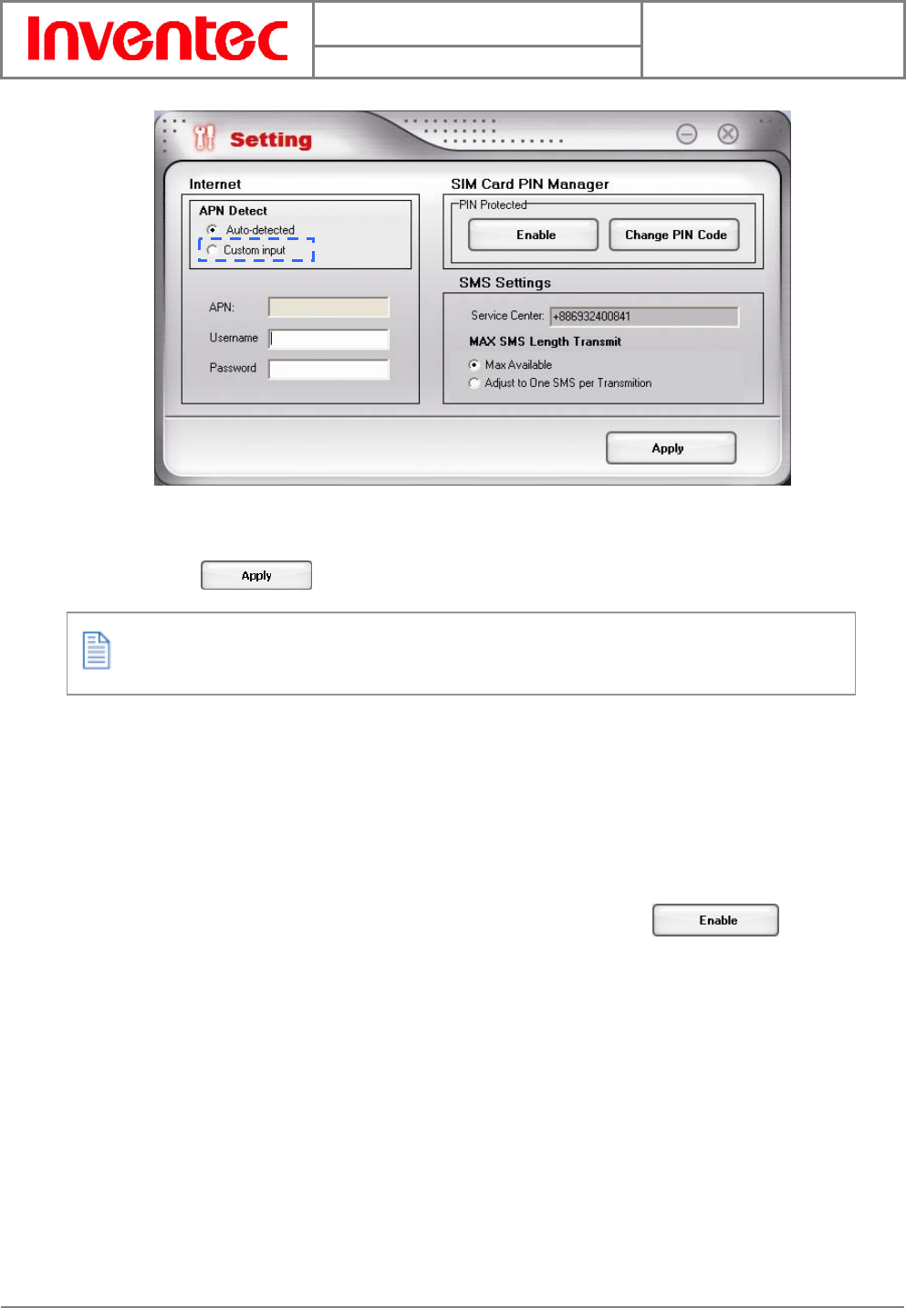 can manually change some settings by clicking the Setting button to enter the setting page.