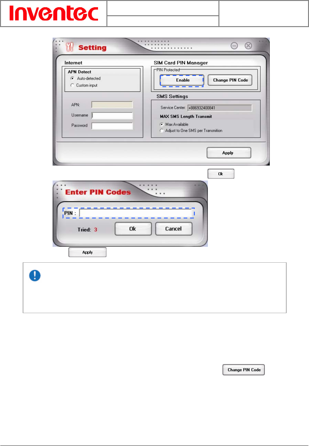 3. Enter the current PIN code and the new PIN code, and then enter the new code