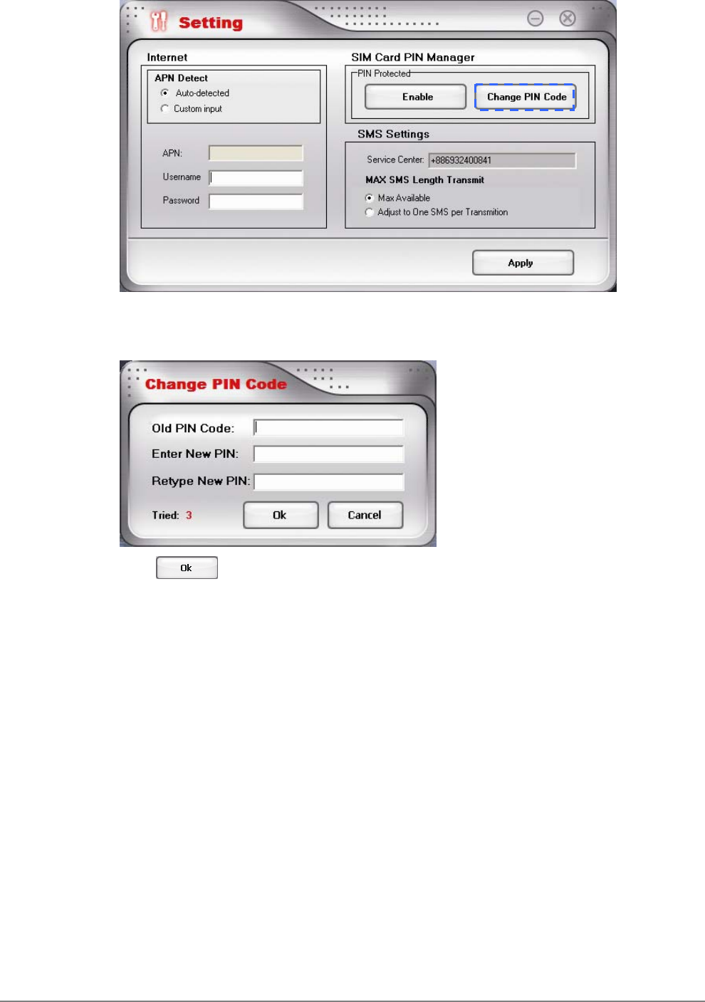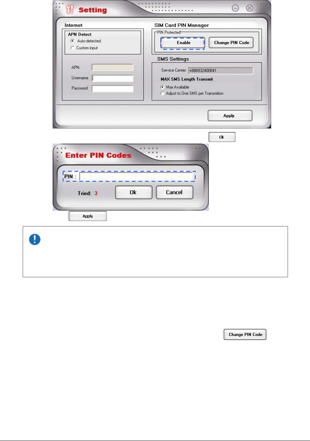 3. Enter the current PIN code and the new PIN code, and then enter the new code