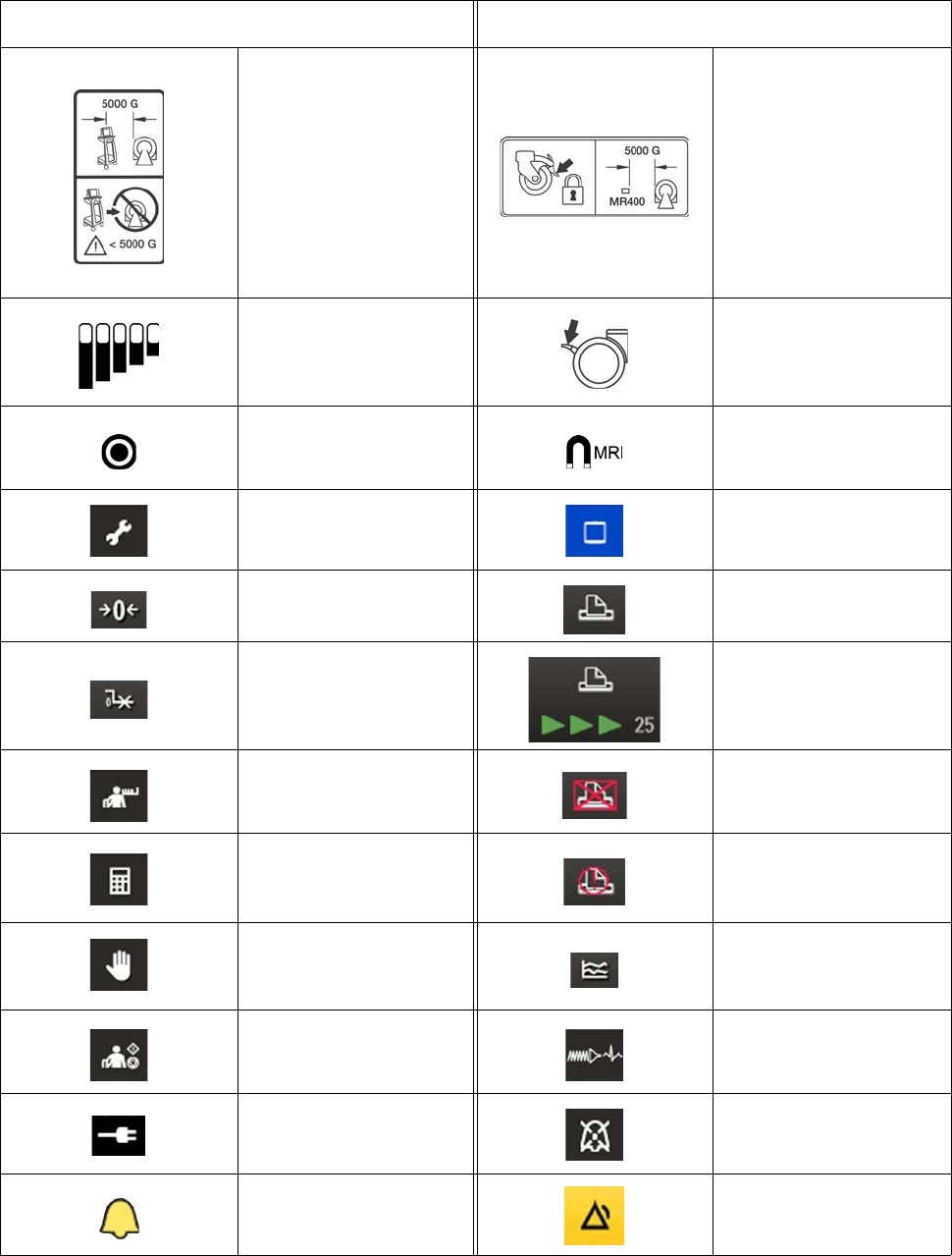 ThesymbolsinthefollowingtablemayappearontheExpressionMR400MRIPatientMonitoring